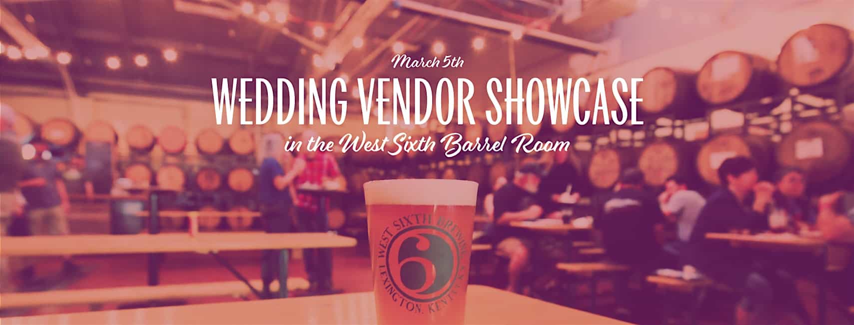 by admin14Feb WEDDING VENDOR SHOWCASE in the West Sixth Barrel Room at West Sixth Brewing – Lexington, KY WEDDING VENDOR SHOWCASE in the West Sixth Barrel Room at West Sixth Brewing – Lexington, KY 3 3 people viewed this event. Don’t miss our Wedding Vendor Showcase in the West Sixth Barrel Room on March 5th from 5-8pm! Tickets-RSVP Link Date And Time Thursday, March 5th, 2026 10:00 PM (PST) Venue West Sixth Brewing Location 501 West 6th Street, Lexington, KY 40508 Event Types Food & Drink Event Category Kentucky Share With Friends Facebook Twitter Linkedin Xing Pinterest Share This Post: