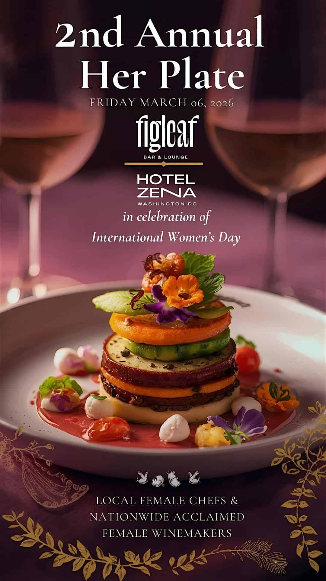 by admin14Feb 2nd Annual Her Plate Dinner Event at Hotel Zena, a Viceroy Urban Retreat – Washington, DC 2nd Annual Her Plate Dinner Event at Hotel Zena, a Viceroy Urban Retreat – Washington, DC 2 2 people viewed this event. Figleaf is celebrating International Women’s Day with a multi-course dining experience with wine pairings featuring Female Winemakers! Tickets-RSVP Link Date And Time Friday, March 6th, 2026 11:00 PM (PST) Venue Hotel Zena, a Viceroy Urban Retreat Location 1155 14th Street Northwest, Washington, DC 20005 Event Types Food & Drink Event Category Washington DC Share With Friends Facebook Twitter Linkedin Xing Pinterest Share This Post: