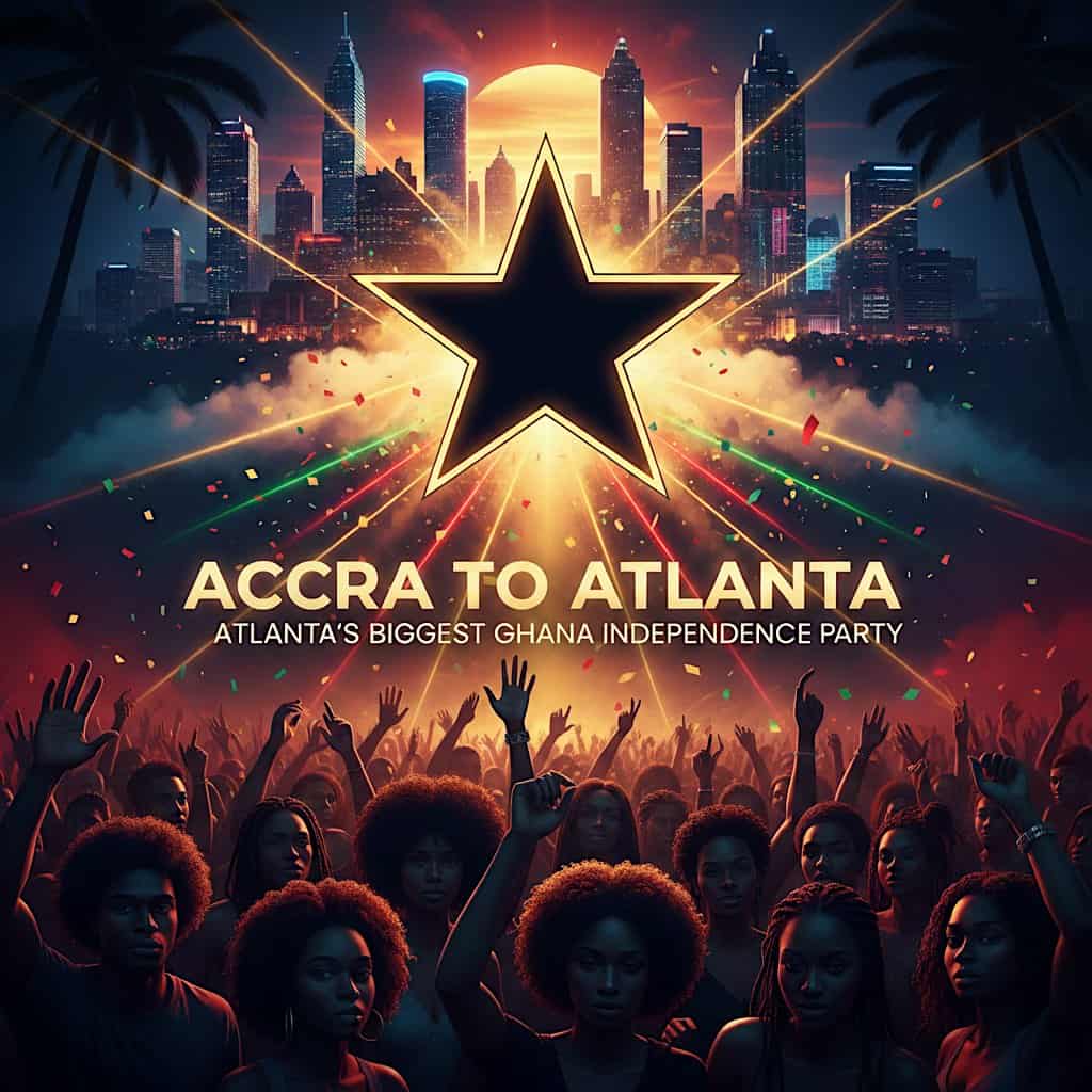 by admin23Feb ACCRA TO ATLANTA – Atlanta’s Biggest Ghana Independence Party at Faaji Restaurant and Lounge – Chamblee, GA ACCRA TO ATLANTA – Atlanta’s Biggest Ghana Independence Party at Faaji Restaurant and Lounge – Chamblee, GA 2 2 people viewed this event. Atlanta’s ultimate Ghana Independence celebration Tickets-RSVP Link Date And Time Friday, March 6th, 2026 10:00 PM (PST) Venue Faaji Restaurant and Lounge Location 4897 Buford Highway Northeast, Chamblee, GA 30341 Event Types MusicParty or Social Gathering Event Category Georgia Share With Friends Facebook Twitter Linkedin Xing Pinterest Share This Post: