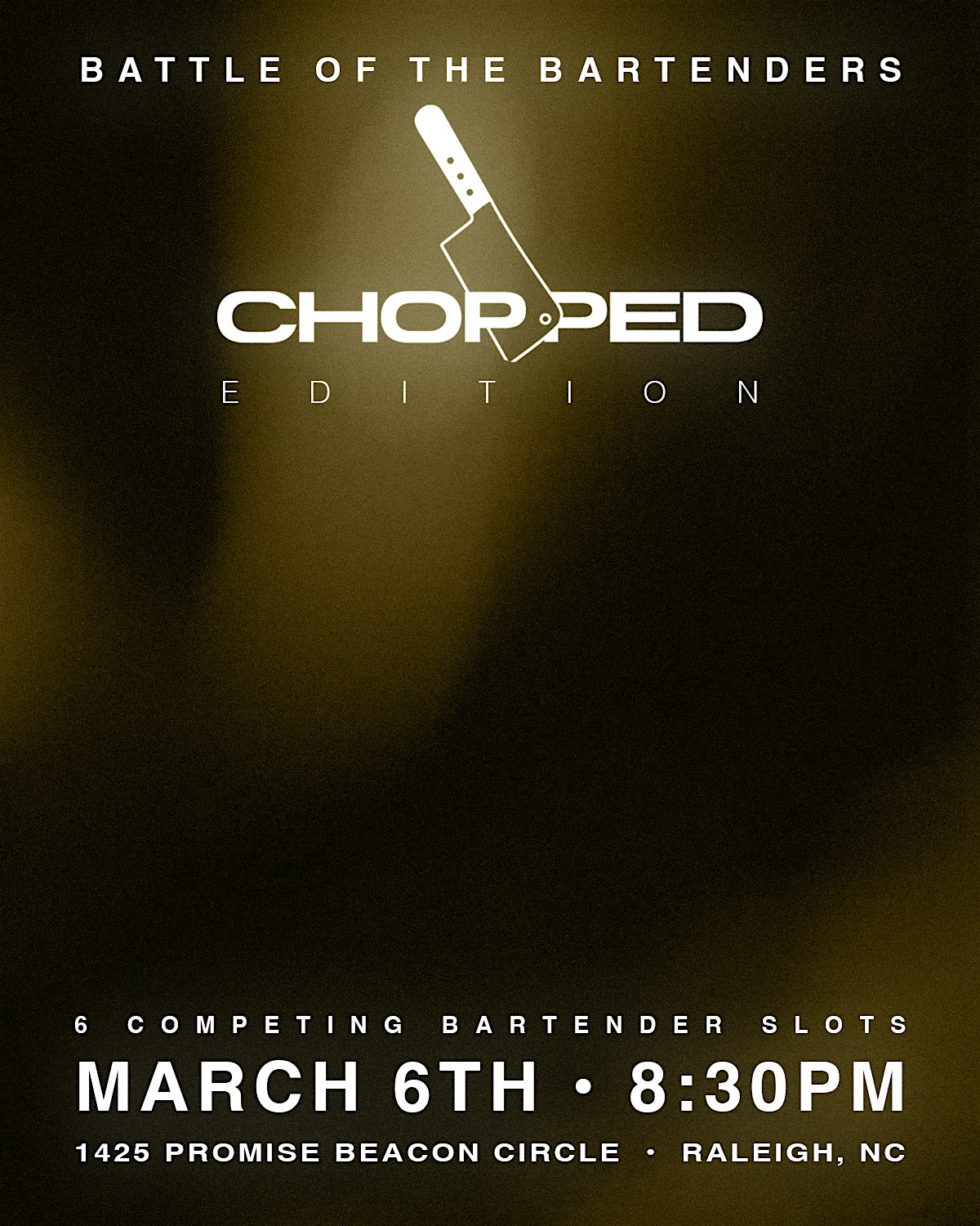 by admin27Feb Battle of the bartenders at 1425 Promise Beacon Cir – Raleigh, NC Battle of the bartenders at 1425 Promise Beacon Cir – Raleigh, NC 2 2 people viewed this event. 6 competing bartenders , 4 guest judges , 3 different rounds and 3 different mystery ingredients, Free drink included with entry Tickets-RSVP Link Date And Time Friday, March 6th, 2026 08:00 PM (PST) Venue 1425 Promise Beacon Cir Location 1425 Promise Beacon Circle, Raleigh, NC 27610 Event Types Food & Drink Event Category North CarolinaRaleigh Share With Friends Facebook Twitter Linkedin Xing Pinterest Share This Post: