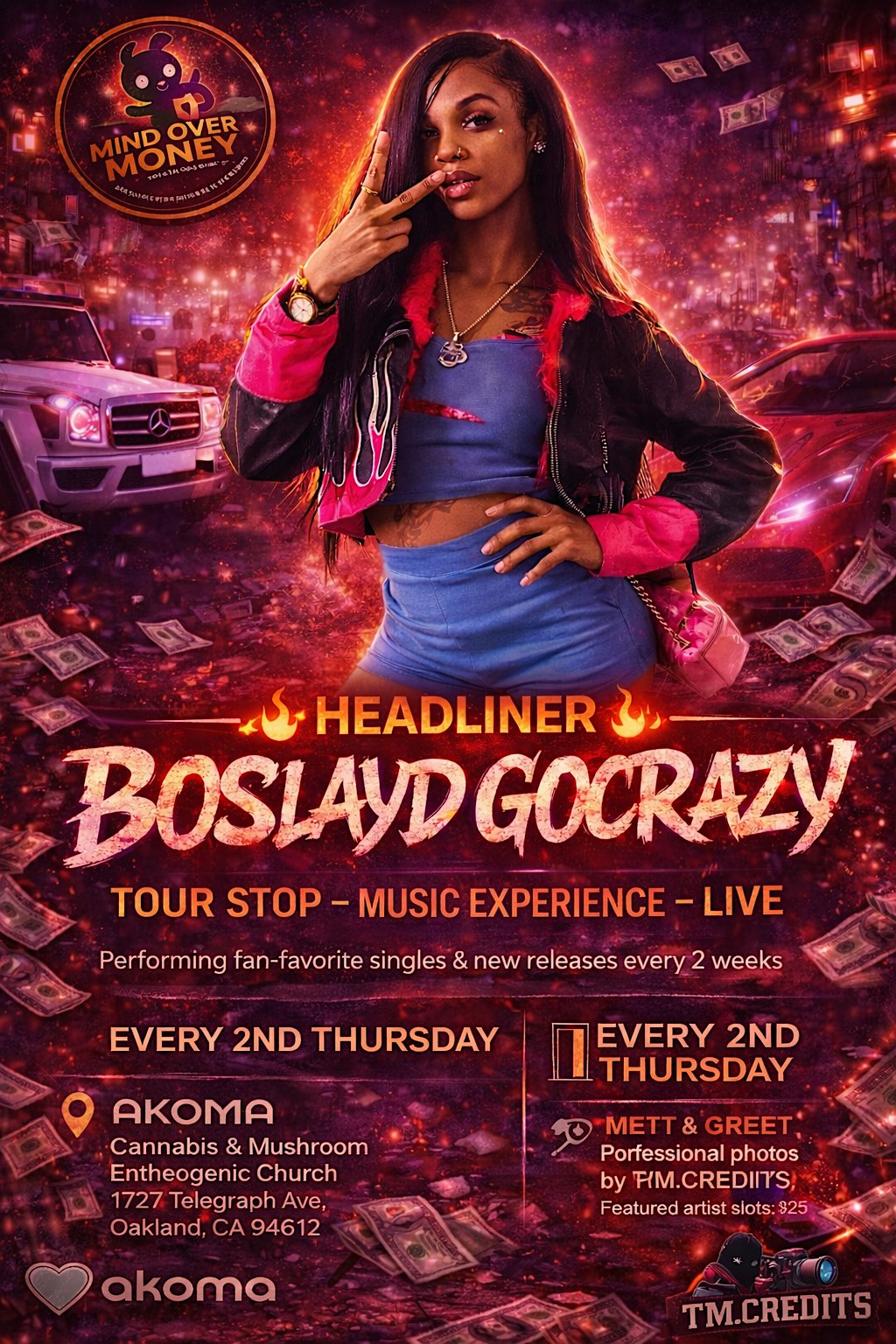 by admin13Feb BoSlayD GoCrazy TOUR STOP MUSIC EXPERIENCE at Akoma Church – Oakland, CA BoSlayD GoCrazy TOUR STOP MUSIC EXPERIENCE at Akoma Church – Oakland, CA 1 1 people viewed this event. Get hyped for BoSlayD GoCrazy TOUR STOP MUSIC EXPERIENCE – live vibes, sharing music with real Fans ! Tickets-RSVP Link Date And Time Friday, March 6th, 2026 02:00 AM (PST) Venue Akoma Church Location 1727 Telegraph Avenue, Oakland, CA 94612 Event Types Concert or PerformanceMusic Event Category CaliforniaOakland Share With Friends Facebook Twitter Linkedin Xing Pinterest Share This Post:
