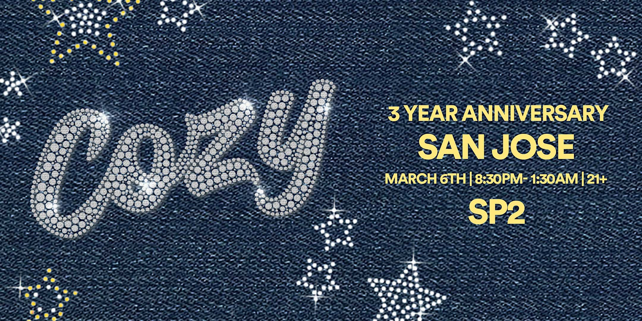by admin23Feb Cozy – San Jose – 3 Year Anniversary – SP2 – Throwback Current R&B HipHop at SP2 Communal Bar + Restaurant – San Jose, CA Cozy – San Jose – 3 Year Anniversary – SP2 – Throwback Current R&B HipHop at SP2 Communal Bar + Restaurant – San Jose, CA 1 1 people viewed this event. We’re back in San Jose celebrating our 3 Year Anniversary! Tickets-RSVP Link Date And Time Friday, March 6th, 2026 08:00 PM (PST) Venue SP2 Communal Bar + Restaurant Location 72 North Almaden Avenue, San Jose, CA 95110 Event Types Concert or PerformanceMusic Event Category CaliforniaSan Jose Share With Friends Facebook Twitter Linkedin Xing Pinterest Share This Post: