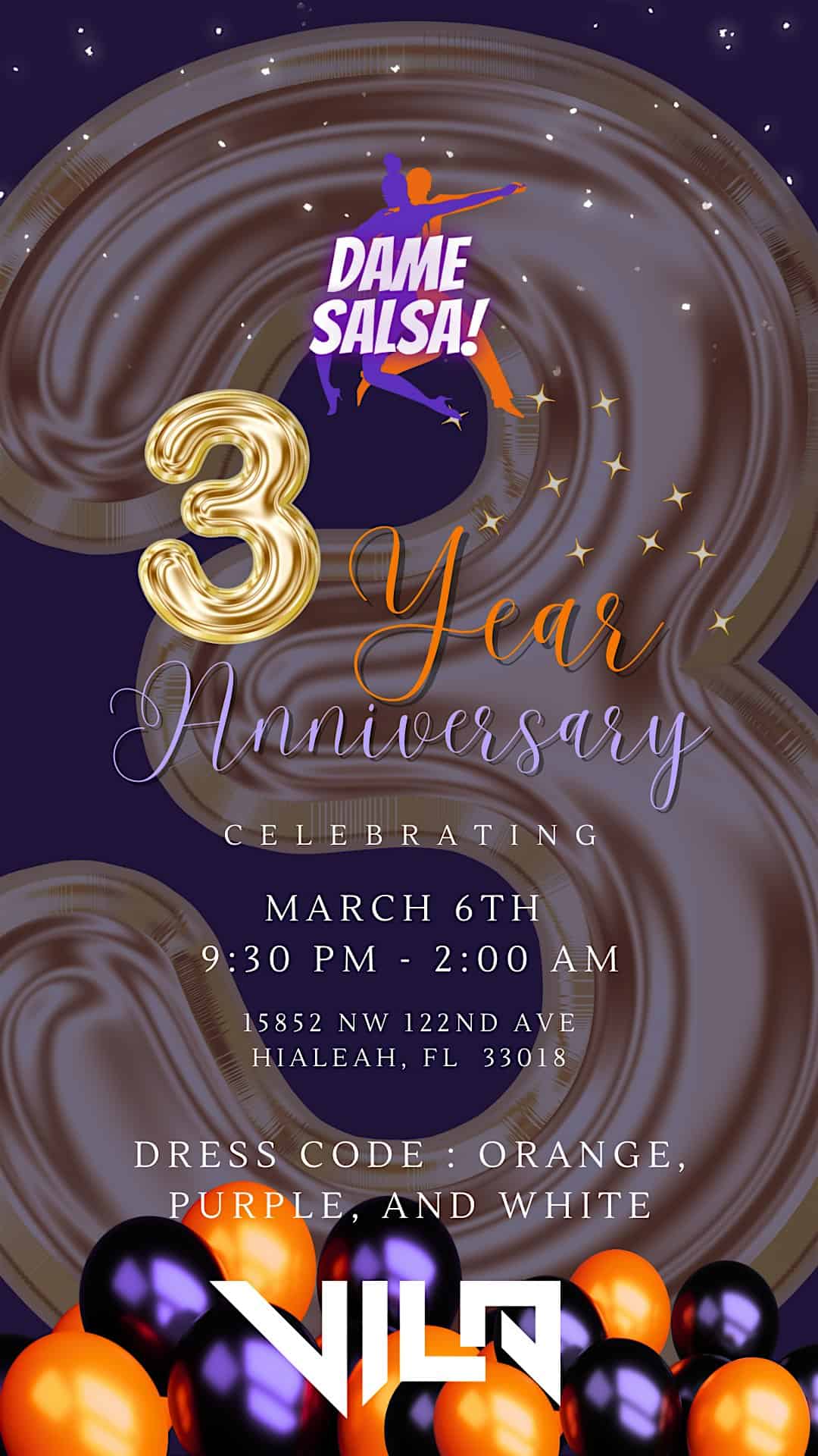 by admin23Feb Dame Salsa’s 3 Year Anniversary at 15852 NW 122nd Ave – Hialeah, FL Dame Salsa’s 3 Year Anniversary at 15852 NW 122nd Ave – Hialeah, FL 4 4 people viewed this event. Come celebrate three amazing years of salsa moves and good vibes with Dame Salsa! Tickets-RSVP Link Date And Time Friday, March 6th, 2026 @ 09:00 PM Location 15852 Northwest 122nd Avenue, Hialeah, FL 33018 Event Types MusicParty or Social Gathering Event Category Florida Share With Friends Facebook Twitter Linkedin Xing Pinterest Share This Post: