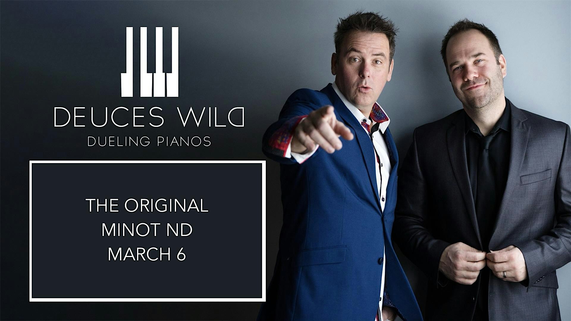 by admin13Feb Deuces Wild Dueling Pianos at The Original Bar and Nightclub – Minot, ND Deuces Wild Dueling Pianos at The Original Bar and Nightclub – Minot, ND 2 2 people viewed this event. Deuces Wild Dueling Pianos makes their return Tickets-RSVP Link Date And Time Friday, March 6th, 2026 01:00 AM (PST) Venue The Original Bar and Nightclub Location 720 North Broadway, Minot, ND 58703 Event Types Concert or PerformanceMusic Event Category MinotNorth Dakota Share With Friends Facebook Twitter Linkedin Xing Pinterest Share This Post: