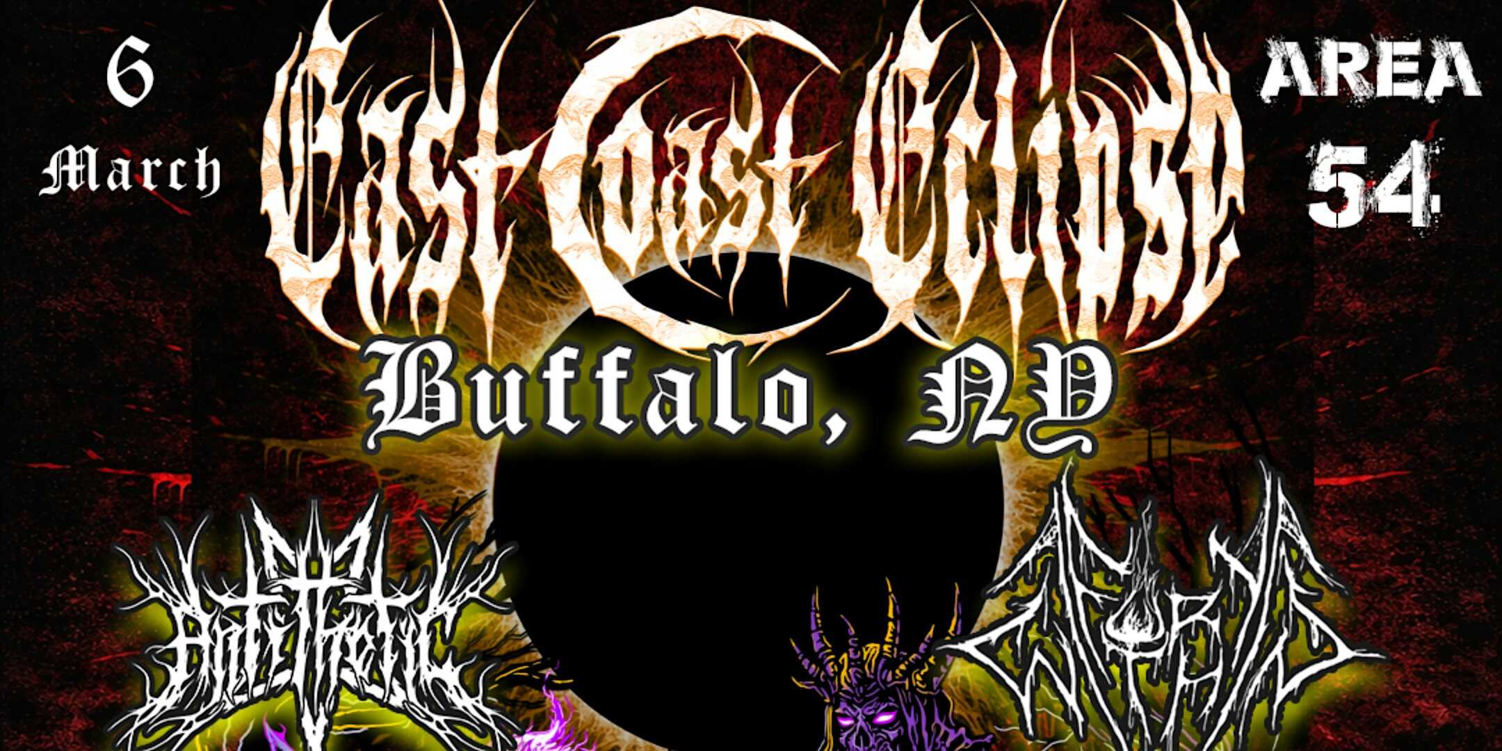 by admin23Feb EAST COAST ECLIPSE IN BUFFALO at Caffe at Amy’s – Buffalo, NY EAST COAST ECLIPSE IN BUFFALO at Caffe at Amy’s – Buffalo, NY 2 2 people viewed this event. Melodic black metal ritual in Buffalo featuring Fury Within, Antithetic & local support. March 6th at Amy’s Place at 3234 Main St, Buffalo. Tickets-RSVP Link Date And Time Friday, March 6th, 2026 07:00 PM (PST) Venue Caffe at Amy's Location 3234 Main Street, Buffalo, NY 14214 Event Types Concert or PerformanceMusic Event Category BuffaloNew York Share With Friends Facebook Twitter Linkedin Xing Pinterest Share This Post: