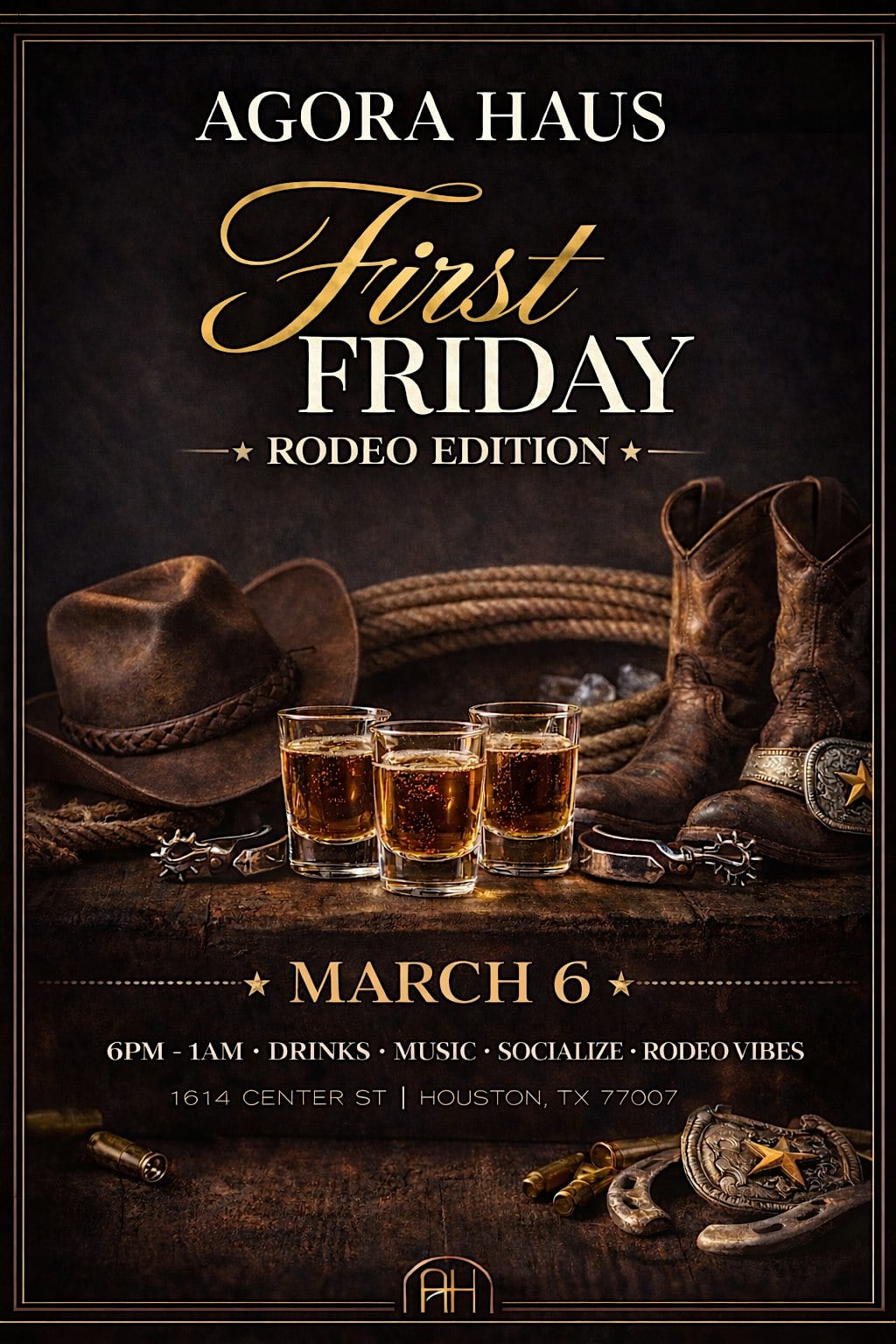 by admin23Feb First Friday: Rodeo Edition at Agora Haus – Houston, TX First Friday: Rodeo Edition at Agora Haus – Houston, TX 2 2 people viewed this event. Sip something strong, meet someone intriguing. First Friday: Rodeo Edition at Agora Haus—Western flair, upscale energy. Tickets-RSVP Link Date And Time Friday, March 6th, 2026 @ 06:00 PM Location 1614 Center Street, Houston, TX 77007 Event Types Community & CultureParty or Social Gathering Event Category HoustonTexas Share With Friends Facebook Twitter Linkedin Xing Pinterest Share This Post: