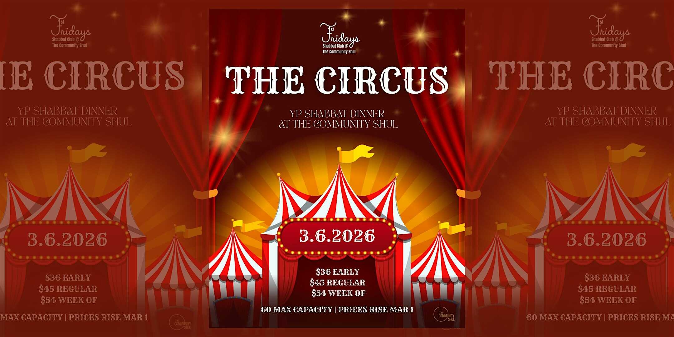 by admin23Feb First Fridays CIRCUS Shabbat Dinner (Ages 21-40) at The Community Shul – Los Angeles, CA First Fridays CIRCUS Shabbat Dinner (Ages 21-40) at The Community Shul – Los Angeles, CA 2 2 people viewed this event. Join us for the another First Fridays at TCS – an elevated, semi-intimate Shabbat table for young professionals ages 21-40 Tickets-RSVP Link Date And Time Friday, March 6th, 2026 07:00 PM (PST) Venue The Community Shul Location 9100 West Pico Boulevard, Los Angeles, CA 90035 Event Types Party or Social Gathering Event Category CaliforniaLos Angeles Share With Friends Facebook Twitter Linkedin Xing Pinterest Share This Post: