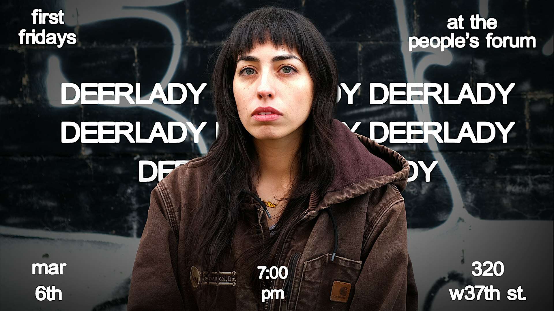 by admin23Feb First Fridays ft. deerlady at The People’s Forum – New York, NY First Fridays ft. deerlady at The People’s Forum – New York, NY 2 2 people viewed this event. Join us on Fri. March 6th for First Fridays at The People’s Forum featuring deerlady. Tickets-RSVP Link Date And Time Friday, March 6th, 2026 07:00 PM (PST) Venue The People's Forum Location 320 West 37th Street, New York, NY 10018 Event Types Concert or PerformanceMusic Event Category New YorkNew York City Share With Friends Facebook Twitter Linkedin Xing Pinterest Share This Post: