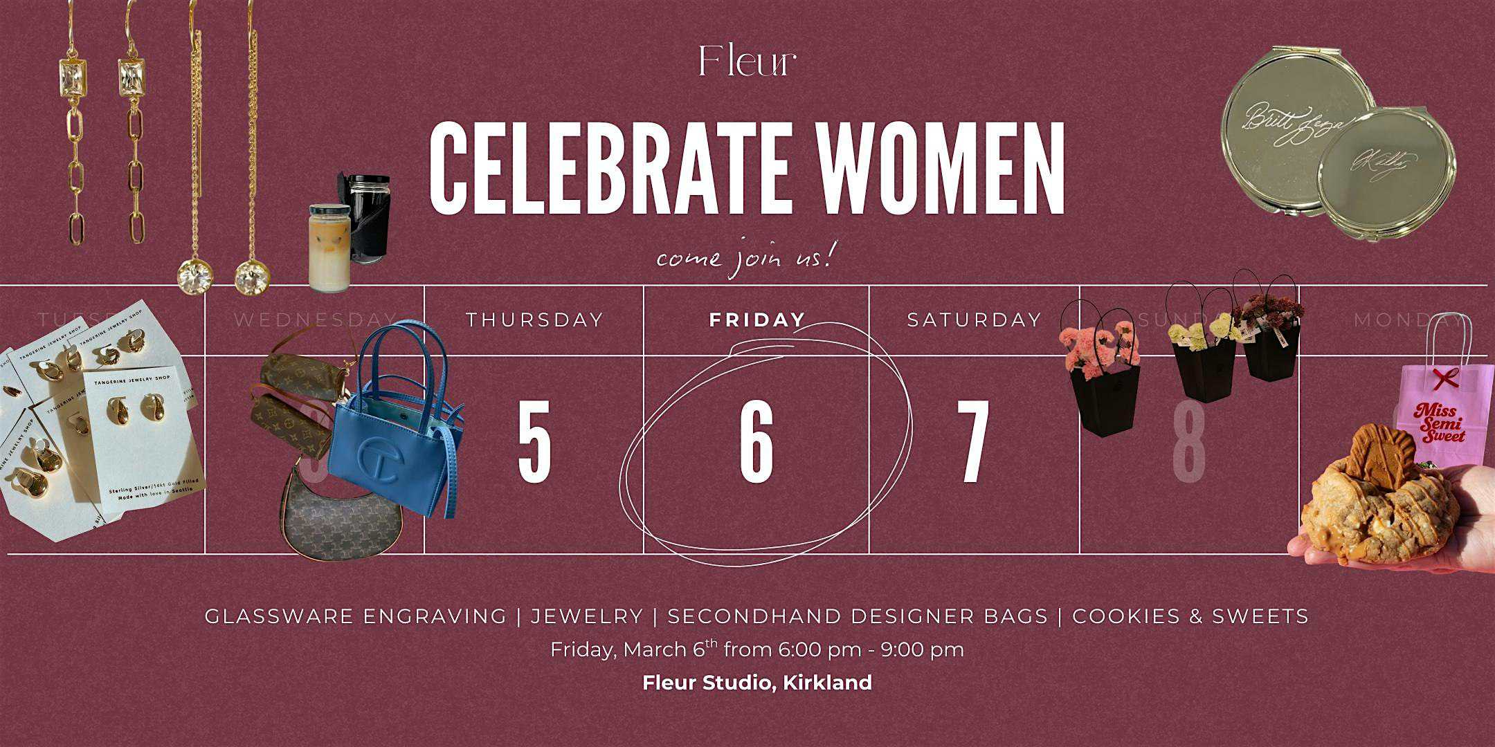 by admin23Feb Fleur Soirée: Celebrate Women at FLEURstudio – Kirkland, WA Fleur Soirée: Celebrate Women at FLEURstudio – Kirkland, WA 1 1 people viewed this event. An empowering soirée honoring women in every form — featuring female-led brands, creators, and community in full bloom. Tickets-RSVP Link Date And Time Friday, March 6th, 2026 @ 06:00 PM Location 12409 Northeast 124th Street, Kirkland, WA 98034 Event Types Community & CultureParty or Social Gathering Event Category SeattleWashington Share With Friends Facebook Twitter Linkedin Xing Pinterest Share This Post: