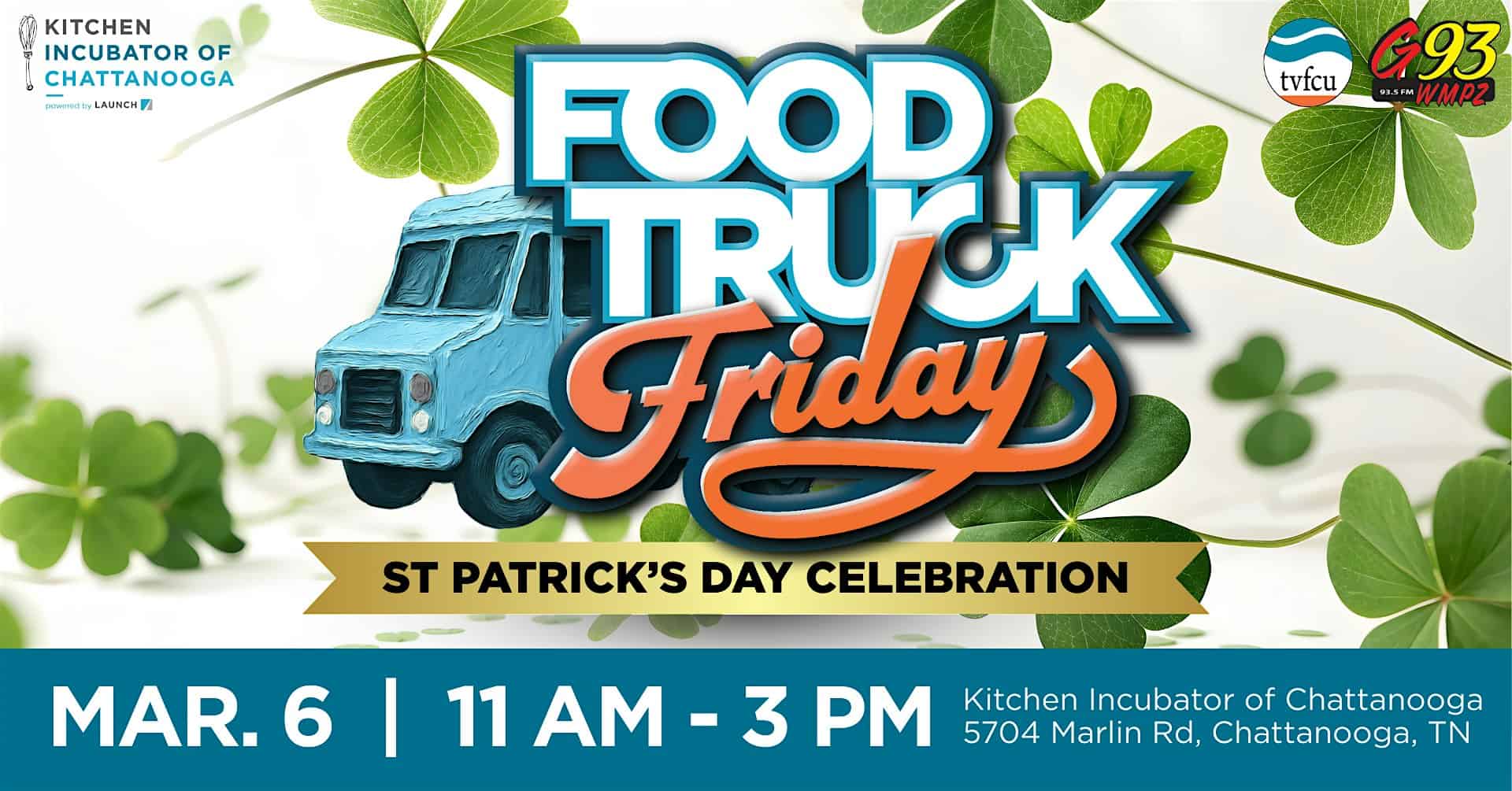 by admin14Feb Food Truck Friday: St. Patrick’s Day at Kitchen Incubator of Chattanooga – Chattanooga, TN Food Truck Friday: St. Patrick’s Day at Kitchen Incubator of Chattanooga – Chattanooga, TN 2 2 people viewed this event. Spice up your lunch break at ‘Food Truck Friday,’ a monthly event with an array of local food trucks and businesses to choose from. Tickets-RSVP Link Date And Time Friday, March 6th, 2026 04:00 PM (PST) Venue Kitchen Incubator of Chattanooga Location 5704 Marlin Road, Chattanooga, TN 37411 Event Types Festival or FairFood & Drink Event Category ChattanoogaTennessee Share With Friends Facebook Twitter Linkedin Xing Pinterest Share This Post: