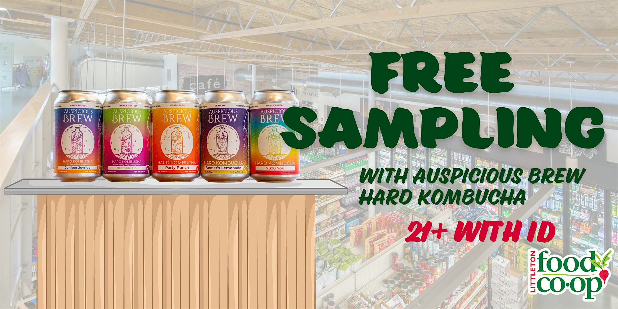 by admin05Mar Free Sampling with Auspicious Brew Hard Kombucha at Littleton Food Co-op – Littleton, NH Free Sampling with Auspicious Brew Hard Kombucha at Littleton Food Co-op – Littleton, NH 2 2 people viewed this event. Auspicious Brew Hard Kombucha will be in store on Fri., March 6 from 3-5PM to sample their NH-made alcoholic kombucha. 21+ w/ ID required. Tickets-RSVP Link Date And Time Friday, March 6th, 2026 03:00 PM (PST) Venue Littleton Food Co-op Location 43 Bethlehem Road, Littleton, NH 3561 Event Types Food & DrinkOther Event Category New Hampshire Share With Friends Facebook Twitter Linkedin Xing Pinterest Share This Post: