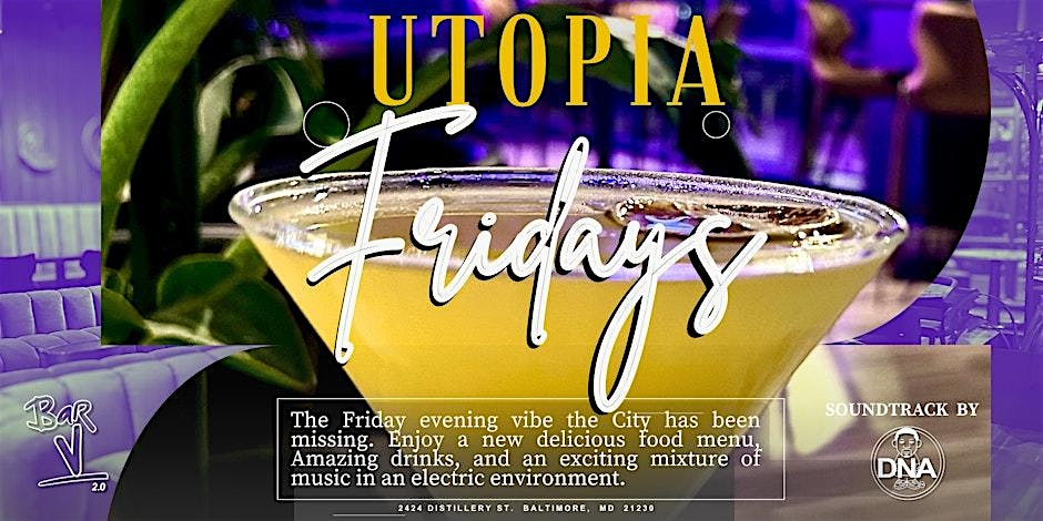 by admin05Mar FRI MAR 6TH: 1ST FRIDAYS – UTOPIA FRIDAYS @ BAR V 2.0 at Bar Vegan – Baltimore, MD FRI MAR 6TH: 1ST FRIDAYS – UTOPIA FRIDAYS @ BAR V 2.0 at Bar Vegan – Baltimore, MD 2 2 people viewed this event. Utopia Fridays w/ DJ DNA spinning live at the all new Bar V 2.0 Friday, 03/06 – it’s gonna be a vibe! Tickets-RSVP Link Date And Time Friday, March 6th, 2026 07:00 PM (PST) Venue Bar Vegan Location 2424 Distillery Street, Baltimore, MD 21230 Event Types Party or Social Gathering Event Category BaltimoreMaryland Share With Friends Facebook Twitter Linkedin Xing Pinterest Share This Post: