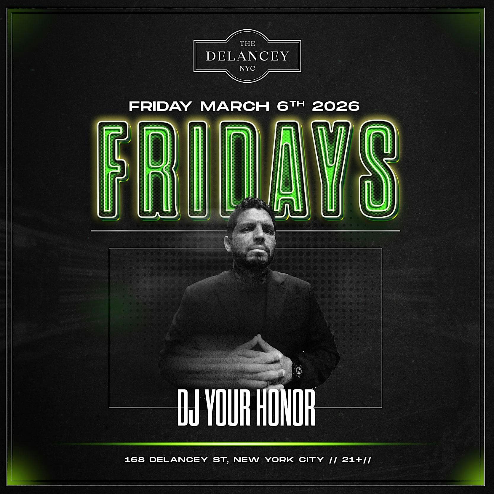 by admin23Feb Friday Nights @ The Delancey at The Delancey | Best Rooftop NY – New York, NY Friday Nights @ The Delancey at The Delancey | Best Rooftop NY – New York, NY 2 2 people viewed this event. Join us every Friday for a multi-floor takeover featuring a rotating lineup of NYC’s top DJs. Tickets-RSVP Link Date And Time Friday, March 6th, 2026 09:00 PM (PST) Venue The Delancey | Best Rooftop NY Location 168 Delancey Street, New York, NY 10002 Event Types MusicParty or Social Gathering Event Category New YorkNew York City Share With Friends Facebook Twitter Linkedin Xing Pinterest Share This Post: