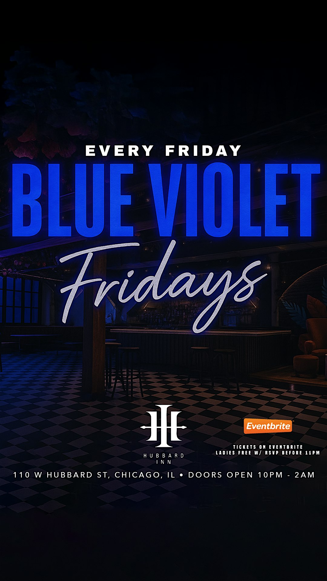 by admin27Feb Fridays @ Hubbard Inn at Hubbard Inn – Chicago, IL Fridays @ Hubbard Inn at Hubbard Inn – Chicago, IL 1 1 people viewed this event. Join us at Hubbard Inn Fridays on the second floor for a night of drinks, music, and good times every Friday! Tickets-RSVP Link Date And Time Friday, March 6th, 2026 10:00 PM (PST) Venue Hubbard Inn Location 110 West Hubbard Street, Chicago, IL 60654 Event Types Food & DrinkParty or Social Gathering Event Category ChicagoIllinois Share With Friends Facebook Twitter Linkedin Xing Pinterest Share This Post: