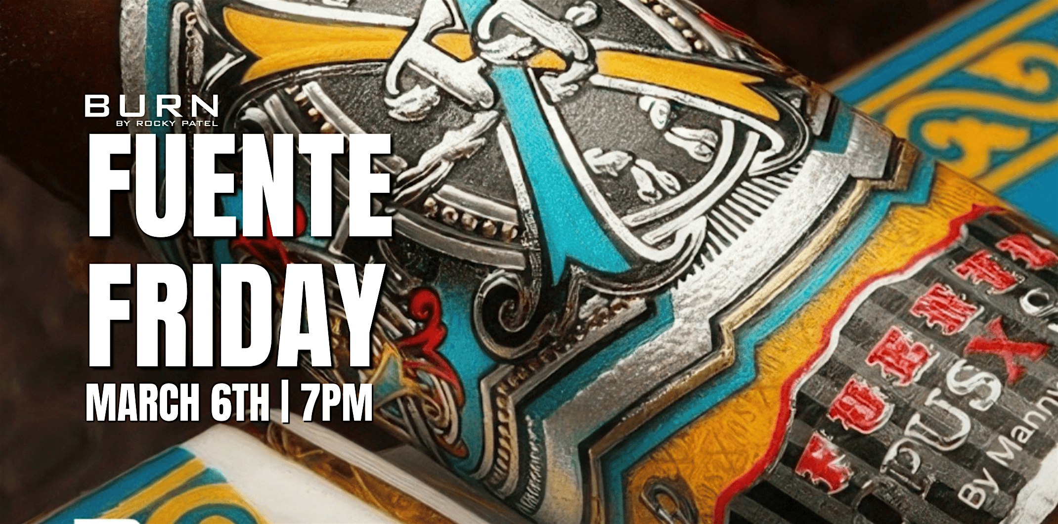 by admin05Mar Fuente Friday at BURN OKC at BURN by Rocky Patel Oklahoma City – Oklahoma City, OK Fuente Friday at BURN OKC at BURN by Rocky Patel Oklahoma City – Oklahoma City, OK 1 1 people viewed this event. Kick off the weekend at BURN Fuente Friday. Enjoy special deals on Arturo Fuente cigars, perfect for aficionados and those exploring. Tickets-RSVP Link Date And Time Friday, March 6th, 2026 07:00 PM (PST) Venue BURN by Rocky Patel Oklahoma City Location 13230 Pawnee Drive, Oklahoma City, OK 73114 Event Types Food & DrinkParty or Social Gathering Event Category OklahomaOklahoma City Share With Friends Facebook Twitter Linkedin Xing Pinterest Share This Post: