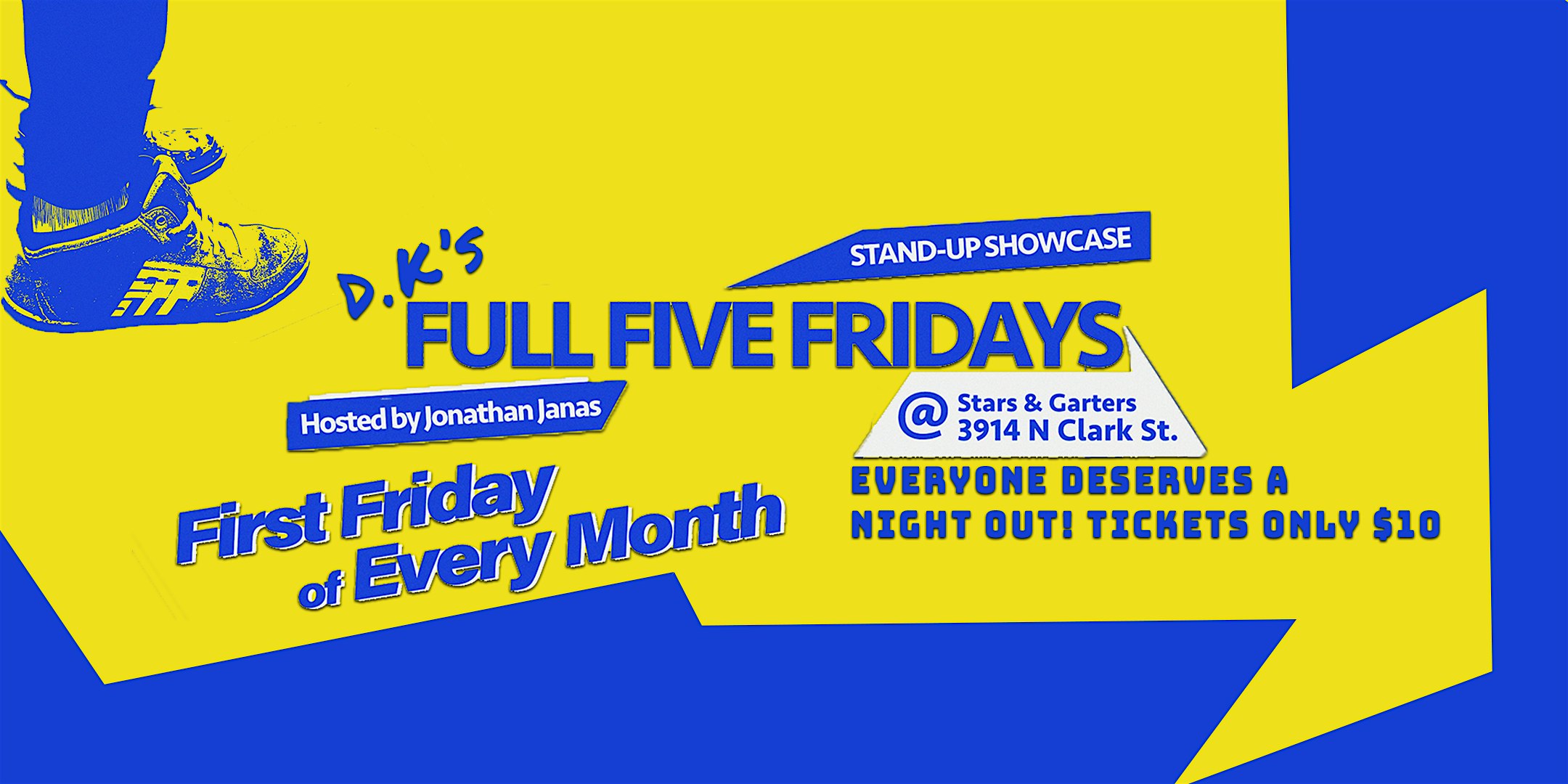 by admin05Mar Full Five Friday! at Stars and Garters Theater – Chicago, IL Full Five Friday! at Stars and Garters Theater – Chicago, IL 1 1 people viewed this event. Chicago’s best up-and-coming comedians film their five-minute sets! Tickets-RSVP Link Date And Time Friday, March 6th, 2026 09:00 PM (PST) Venue Stars and Garters Theater Location 3914 North Clark Street, Chicago, IL 60613 Event Types Concert or PerformancePerforming & Visual Arts Event Category ChicagoIllinois Share With Friends Facebook Twitter Linkedin Xing Pinterest Share This Post: