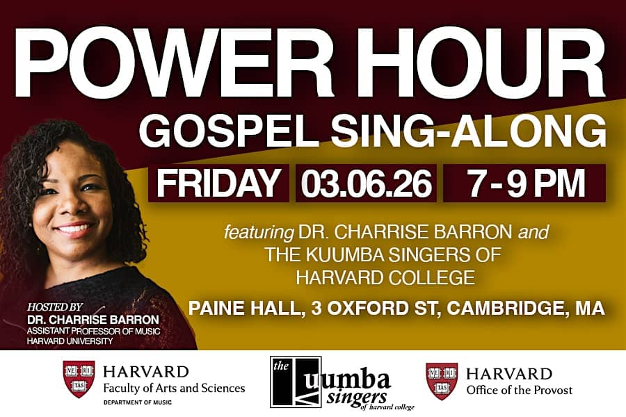 by admin23Feb Gospel Music Power Hour at John Knowles Paine Concert Hall – Cambridge, MA Gospel Music Power Hour at John Knowles Paine Concert Hall – Cambridge, MA 2 2 people viewed this event. Join us for an evening of joyful praise, music, and community as we celebrate Umoja – unity through the power of gospel music. Tickets-RSVP Link Date And Time Friday, March 6th, 2026 07:00 PM (PST) Venue John Knowles Paine Concert Hall Location 3 Oxford St, Cambridge, MA 2138 Event Types Concert or PerformanceMusic Event Category Massachusetts Share With Friends Facebook Twitter Linkedin Xing Pinterest Share This Post: