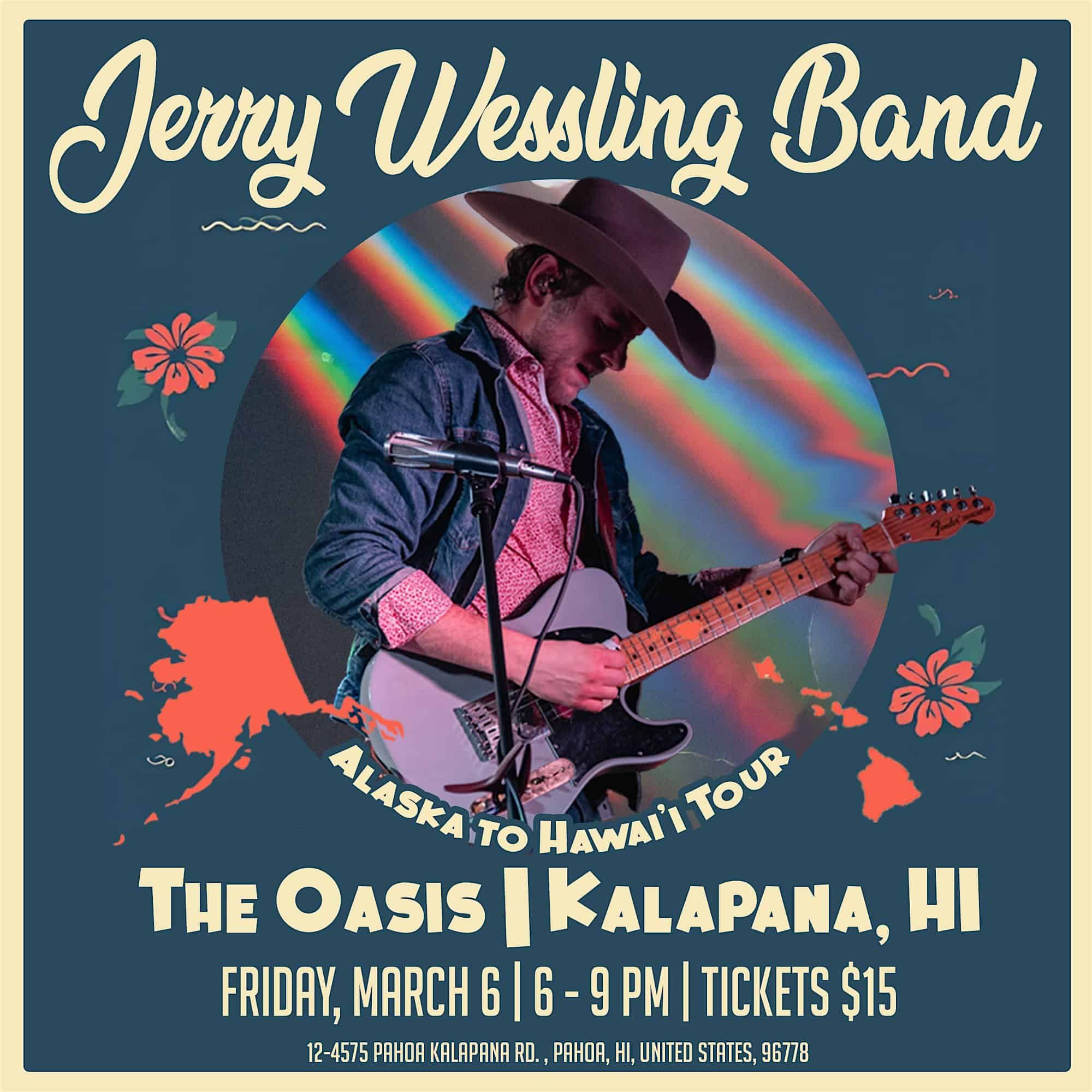 by admin23Feb JERRY WESSLING BAND LIVE AT THE OASIS KALAPANI, HI at 12-4575 Pahoa Kalapana Rd – Pāhoa, HI JERRY WESSLING BAND LIVE AT THE OASIS KALAPANI, HI at 12-4575 Pahoa Kalapana Rd – Pāhoa, HI 1 1 people viewed this event. Catch the Jerry Wessling Band rocking live vibes at The Oasis in Kalapani, HI – don’t miss out! Tickets-RSVP Link Date And Time Friday, March 6th, 2026 06:00 PM (PST) Venue 12-4575 Pahoa Kalapana Rd Location 12-4575 Pahoa Kalapana Road, Pāhoa, HI 96778 Event Types Concert or PerformanceMusic Event Category Hawaii Share With Friends Facebook Twitter Linkedin Xing Pinterest Share This Post:
