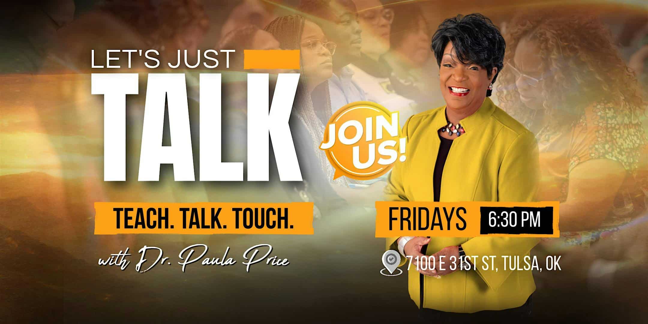 by admin23Feb Let’s Just Talk at 7100 E 31st St – Tulsa, OK Let’s Just Talk at 7100 E 31st St – Tulsa, OK 2 2 people viewed this event. Bring your questions and curiosity about God to this open discussion forum where an experienced theologian will answer them. Tickets-RSVP Link Date And Time Friday, March 6th, 2026 @ 06:00 PM Location 7100 East 31st Street, Tulsa, OK 74145 Event Types Party or Social Gathering Event Category OklahomaTulsa Share With Friends Facebook Twitter Linkedin Xing Pinterest Share This Post: