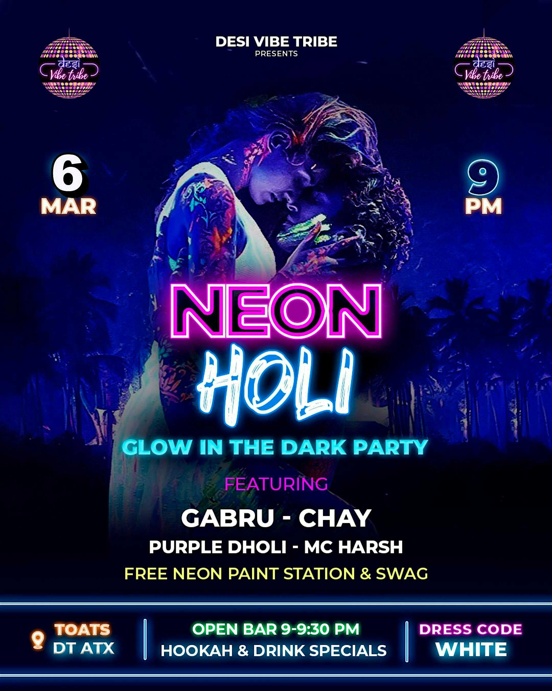 by admin23Feb Neon Holi – Glow in the Dark Bollywood Party – March 6th – Austin at TOATS ATX – Austin, TX Neon Holi – Glow in the Dark Bollywood Party – March 6th – Austin at TOATS ATX – Austin, TX 2 2 people viewed this event. Get ready for the most electrifying Holi party of the year with a Twist—where Neon Paint meets Desi Beats, and Tradition meets Nightlife! Tickets-RSVP Link Date And Time Friday, March 6th, 2026 09:00 PM (PST) Venue TOATS ATX Location 213 West 4th Street, Austin, TX 78701 Event Types MusicParty or Social Gathering Event Category AustinTexas Share With Friends Facebook Twitter Linkedin Xing Pinterest Share This Post: