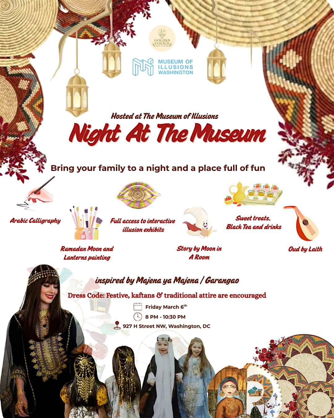 by admin23Feb Night At The Museum at Museum of Illusions Washington DC – Washington, DC Night At The Museum at Museum of Illusions Washington DC – Washington, DC 2 2 people viewed this event. Join us for a magical and family-friendly Ramadan evening at the Museum of Illusions Washington DC! Hosted by Golden Voyage Tickets-RSVP Link Date And Time Friday, March 6th, 2026 @ 08:00 PM Location 927 H Street Northwest, Washington, DC 20001 Event Types Community & CultureParty or Social Gathering Event Category Washington DC Share With Friends Facebook Twitter Linkedin Xing Pinterest Share This Post: