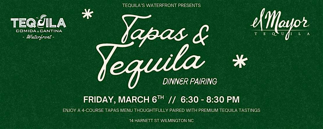 by admin23Feb Tapas & Tequila Dinner Pairing @ Tequila’s Waterfront at Tequila’s Waterfront – Wilmington, NC Tapas & Tequila Dinner Pairing @ Tequila’s Waterfront at Tequila’s Waterfront – Wilmington, NC 2 2 people viewed this event. Tapas & Tequila Dinner March 6, 6:30pm at Tequila’s Waterfront. Chef-curated pairings, $60 all-in. Limited tickets—reserve now! Tickets-RSVP Link Date And Time Friday, March 6th, 2026 06:00 PM (PST) Venue Tequila's Waterfront Location 14 Harnett Street, Wilmington, NC 28401 Event Types Food & Drink Event Category North Carolina Share With Friends Facebook Twitter Linkedin Xing Pinterest Share This Post: