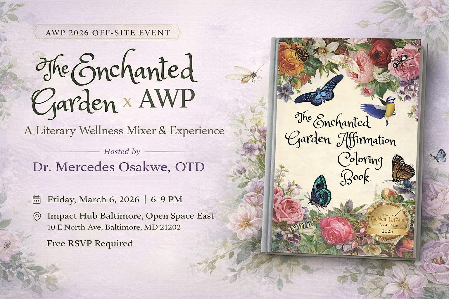 by admin23Feb The Enchanted Garden x AWP: A Literary Wellness Mixer & Experience at Impact Hub Baltimore – Baltimore, MD The Enchanted Garden x AWP: A Literary Wellness Mixer & Experience at Impact Hub Baltimore – Baltimore, MD 2 2 people viewed this event. Step into The Enchanted Garden – an AWP 2026 literary Wellness Mixer blending affirmations, creativity & community. Books & light bites. Tickets-RSVP Link Date And Time Friday, March 6th, 2026 06:00 PM (PST) Venue Impact Hub Baltimore Location 10 East North Avenue, Baltimore, MD 21202 Event Types Party or Social Gathering Event Category BaltimoreMaryland Share With Friends Facebook Twitter Linkedin Xing Pinterest Share This Post: