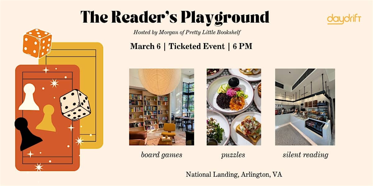 by admin23Feb The Reader’s Playground at Daydrift Books & Cafe – Arlington, VA The Reader’s Playground at Daydrift Books & Cafe – Arlington, VA 2 2 people viewed this event. Come unwind, play, and connect with fellow readers and game enthusiasts at The Reader’s Playground! Tickets-RSVP Link Date And Time Friday, March 6th, 2026 06:00 PM (PST) Venue Daydrift Books & Cafe Location 1550 Crystal Drive, Arlington, VA 22202 Event Types Party or Social Gathering Event Category Virginia Share With Friends Facebook Twitter Linkedin Xing Pinterest Share This Post: