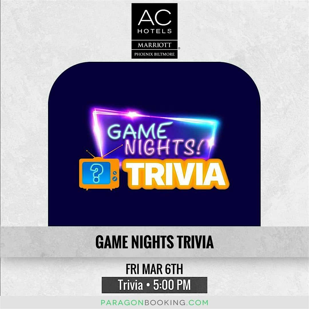 Trivia in Biltmore Phoenix Arizona featuring Game Nights Trivia at AC Hotel by Marriott Phoenix Biltmore at AC Hotel by Marriott Phoenix Biltmore – Phoenix, AZ
