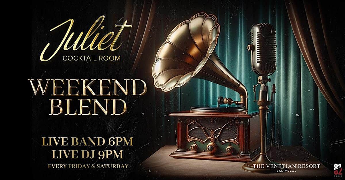 by admin23Feb Weekend Blend at Juliet Cocktail Room – Las Vegas, NV Weekend Blend at Juliet Cocktail Room – Las Vegas, NV 1 1 people viewed this event. Weekend Blend at Juliet Cocktail Room, where live bands and DJs come together to create the perfect mix of music. Tickets-RSVP Link Date And Time Friday, March 6th, 2026 06:00 PM (PST) Venue Juliet Cocktail Room Location 3355 South Las Vegas Boulevard, Las Vegas, NV 89109 Event Types MusicParty or Social Gathering Event Category Las VegasNevada Share With Friends Facebook Twitter Linkedin Xing Pinterest Share This Post: