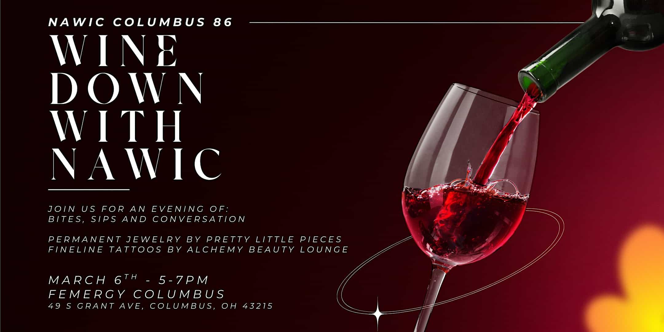 by admin14Feb Wine Down with NAWIC at Femergy® – Columbus, OH Wine Down with NAWIC at Femergy® – Columbus, OH 2 2 people viewed this event. Join us for a fun evening of networking, bites and sips with the amazing women of NAWIC. We can’t wait to see you there! Tickets-RSVP Link Date And Time Friday, March 6th, 2026 10:00 PM (PST) Venue Femergy® Location 49 South Grant Avenue, Columbus, OH 43215 Event Types Food & Drink Event Category Ohio Share With Friends Facebook Twitter Linkedin Xing Pinterest Share This Post: