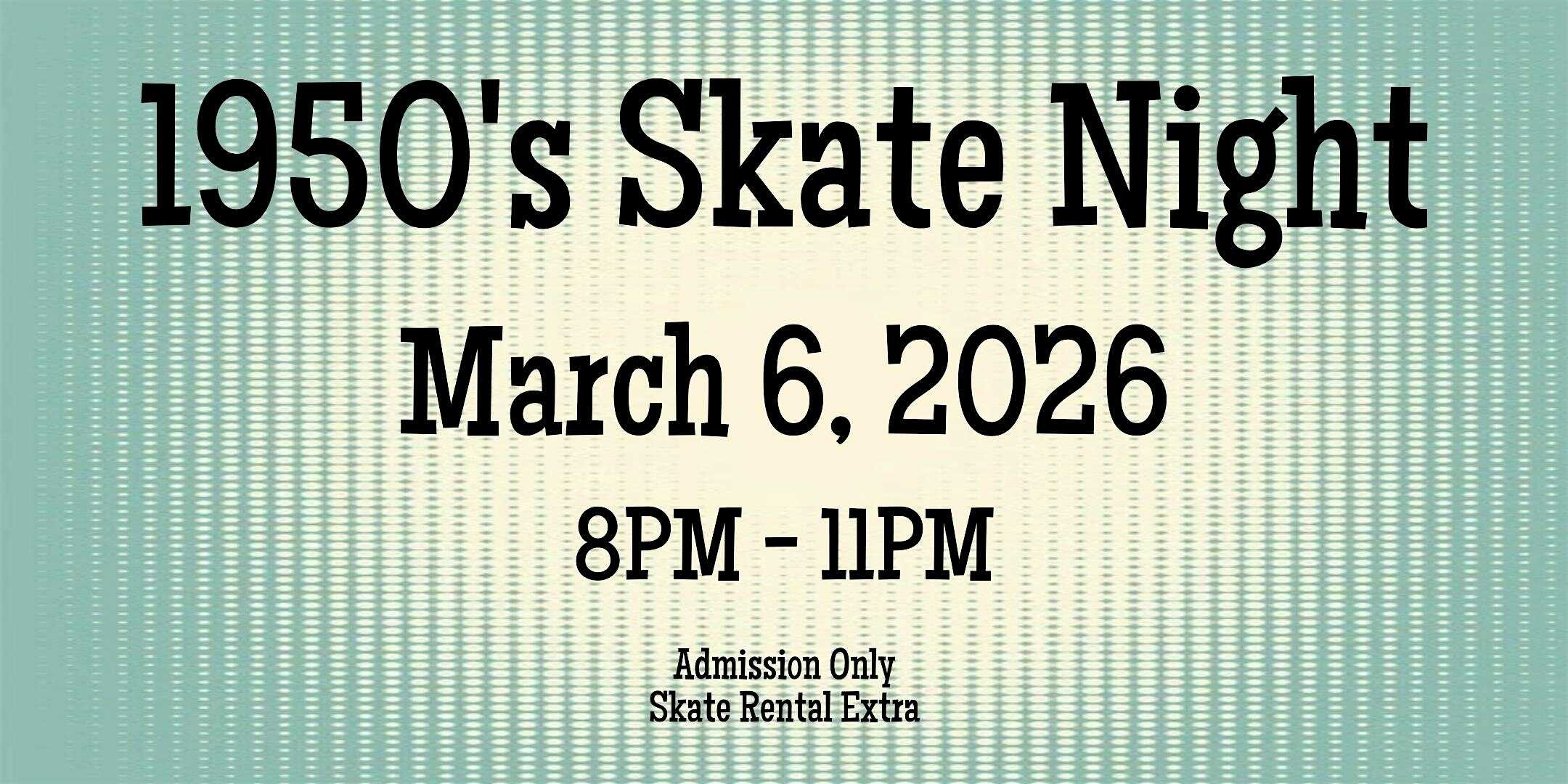 by admin14Feb 1950’s Skate Night ALL AGES 8pm – 11pm Admission only at Moonlight Rollerway, Inc. – Glendale, CA 1950’s Skate Night ALL AGES 8pm – 11pm Admission only at Moonlight Rollerway, Inc. – Glendale, CA 1 1 people viewed this event. Admission ticket only. Skate rentals must be purchased at the window ($8.00) if you don’t bring your own skates. Tickets-RSVP Link Date And Time Saturday, March 7th, 2026 04:00 AM (PST) Venue Moonlight Rollerway, Inc. Location 5110 San Fernando Road, Glendale, CA 91204 Event Types OtherParty or Social Gathering Event Category California Share With Friends Facebook Twitter Linkedin Xing Pinterest Share This Post: