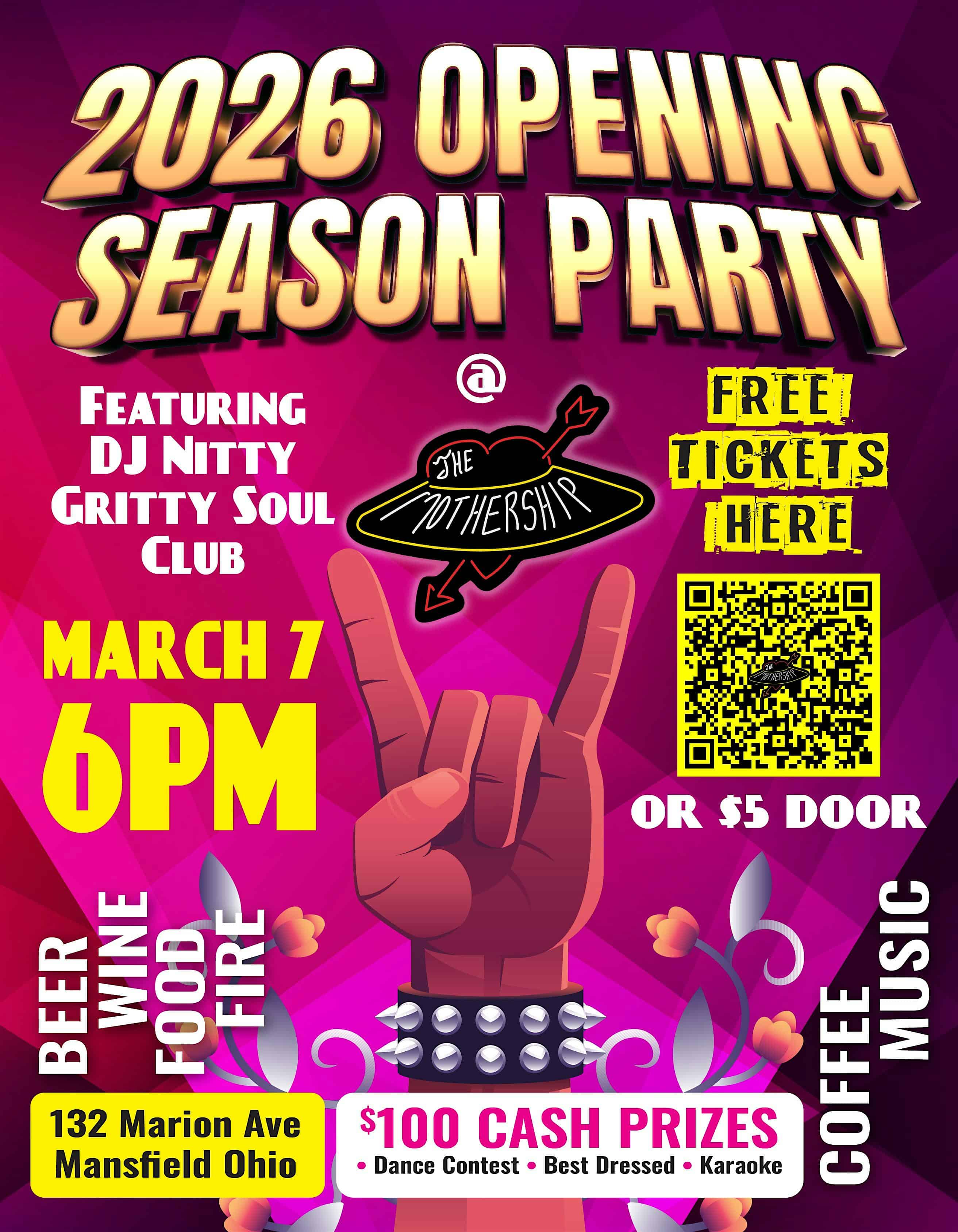 by admin14Feb 2026 Opening Season Party @ The Mothership at 132 Marion Ave – Mansfield, OH 2026 Opening Season Party @ The Mothership at 132 Marion Ave – Mansfield, OH 1 1 people viewed this event. 2026 Concert Season Begins @ The Mothership! Tickets-RSVP Link Date And Time Saturday, March 7th, 2026 11:00 PM (PST) Venue 132 Marion Ave Location 132 Marion Avenue, Mansfield, OH 44903 Event Types Community & CultureParty or Social Gathering Event Category Ohio Share With Friends Facebook Twitter Linkedin Xing Pinterest Share This Post: