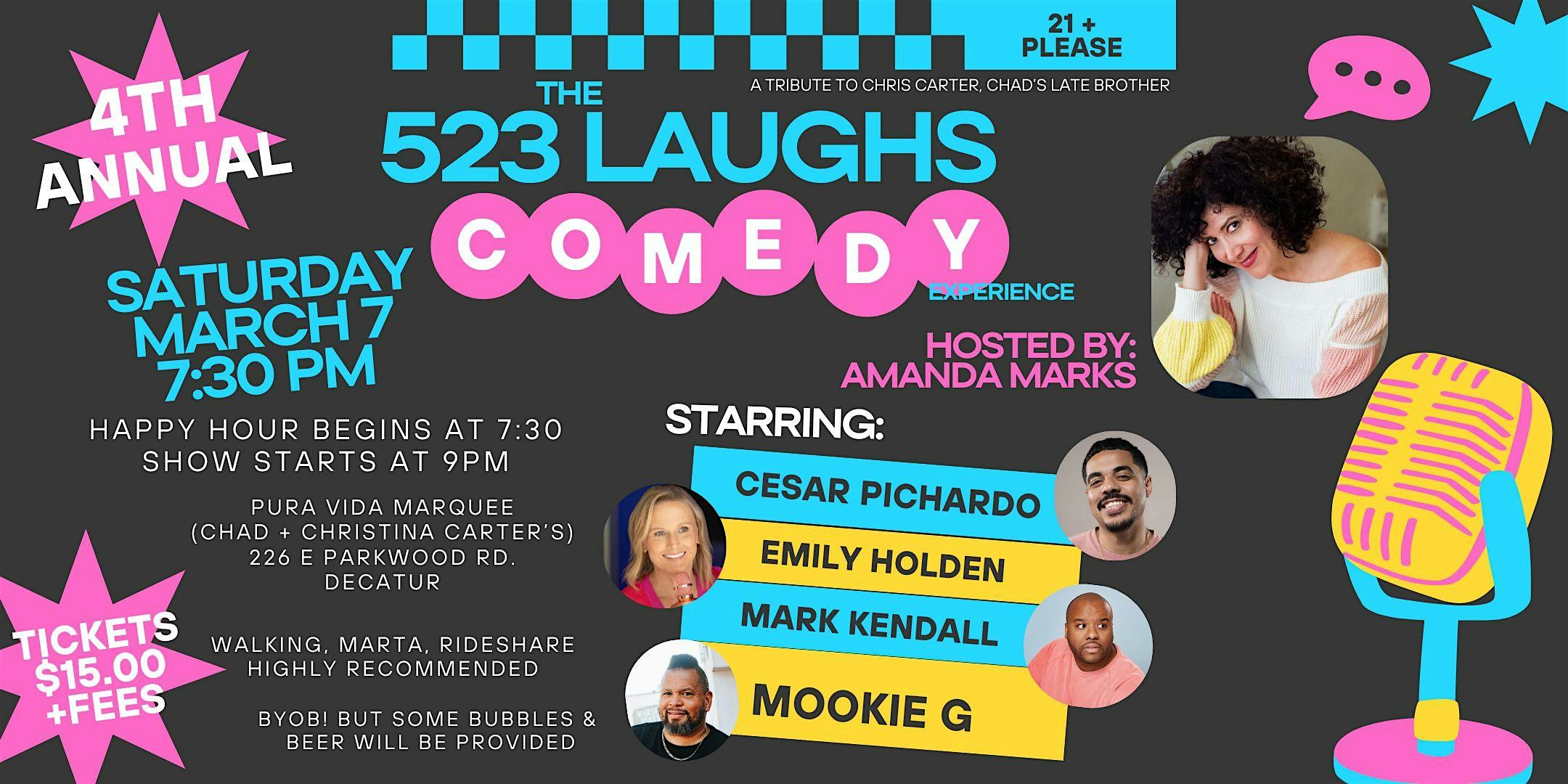 by admin05Mar 4th Annual 523 Laughs Comedy Night at 226 E Parkwood Rd – Decatur, GA 4th Annual 523 Laughs Comedy Night at 226 E Parkwood Rd – Decatur, GA 1 1 people viewed this event. Join us for a night of laughs! Come see some local comedians perform at the Pura Vida Marquee. Tickets-RSVP Link Date And Time Saturday, March 7th, 2026 07:00 PM (PST) Venue 226 E Parkwood Rd Location 226 East Parkwood Road, Decatur, GA 30030 Event Types Concert or PerformancePerforming & Visual Arts Event Category Georgia Share With Friends Facebook Twitter Linkedin Xing Pinterest Share This Post: