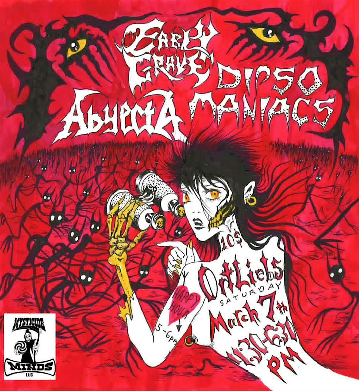 by admin27Feb ABYECTA, EARLY GRAVE, DIPSOMANIACS at Ortlieb’s Venue – philadelphia, PA ABYECTA, EARLY GRAVE, DIPSOMANIACS at Ortlieb’s Venue – philadelphia, PA 3 3 people viewed this event. Get ready to thrash and dive deep with ABYECTA, EARLY GRAVE, and DIPSOMANIACS live—pure metal chaos! Tickets-RSVP Link Date And Time Saturday, March 7th, 2026 04:00 PM (PST) Venue Ortlieb's Venue Location 847 N 3rd, philadelphia, PA 19123 Event Types Concert or PerformanceMusic Event Category PennsylvaniaPhiladelphia Share With Friends Facebook Twitter Linkedin Xing Pinterest Share This Post: