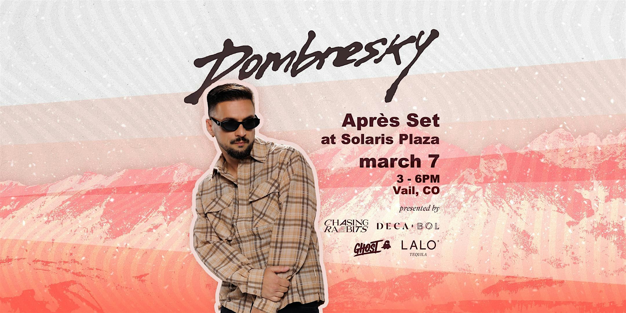 by admin13Feb Après with Dombresky at Solaris Plaza and Ice Rink – Vail, CO Après with Dombresky at Solaris Plaza and Ice Rink – Vail, CO 2 2 people viewed this event. Celebrate on the plaza with a free outdoor après set on the Solaris rink by Dombresky. All ages welcome! Tickets-RSVP Link Date And Time Saturday, March 7th, 2026 10:00 PM (PST) Venue Solaris Plaza and Ice Rink Location 141 East Meadow Drive, Vail, CO 81657 Event Types Concert or PerformanceMusic Event Category Colorado Share With Friends Facebook Twitter Linkedin Xing Pinterest Share This Post: