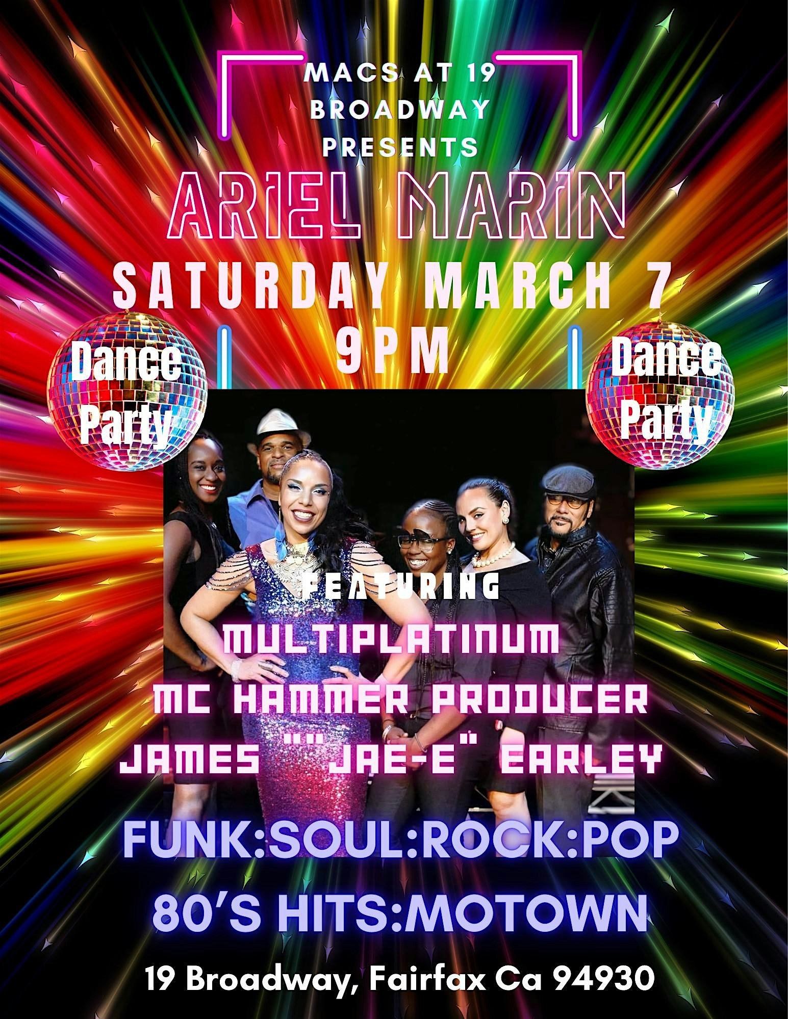 Ariel Marin Dance Party – Funk, Soul, Rock & 80s Motown Night at Mac’s at Mac’s at 19 Broadway, Broadway, Fairfax, CA, USA – Fairfax, CA