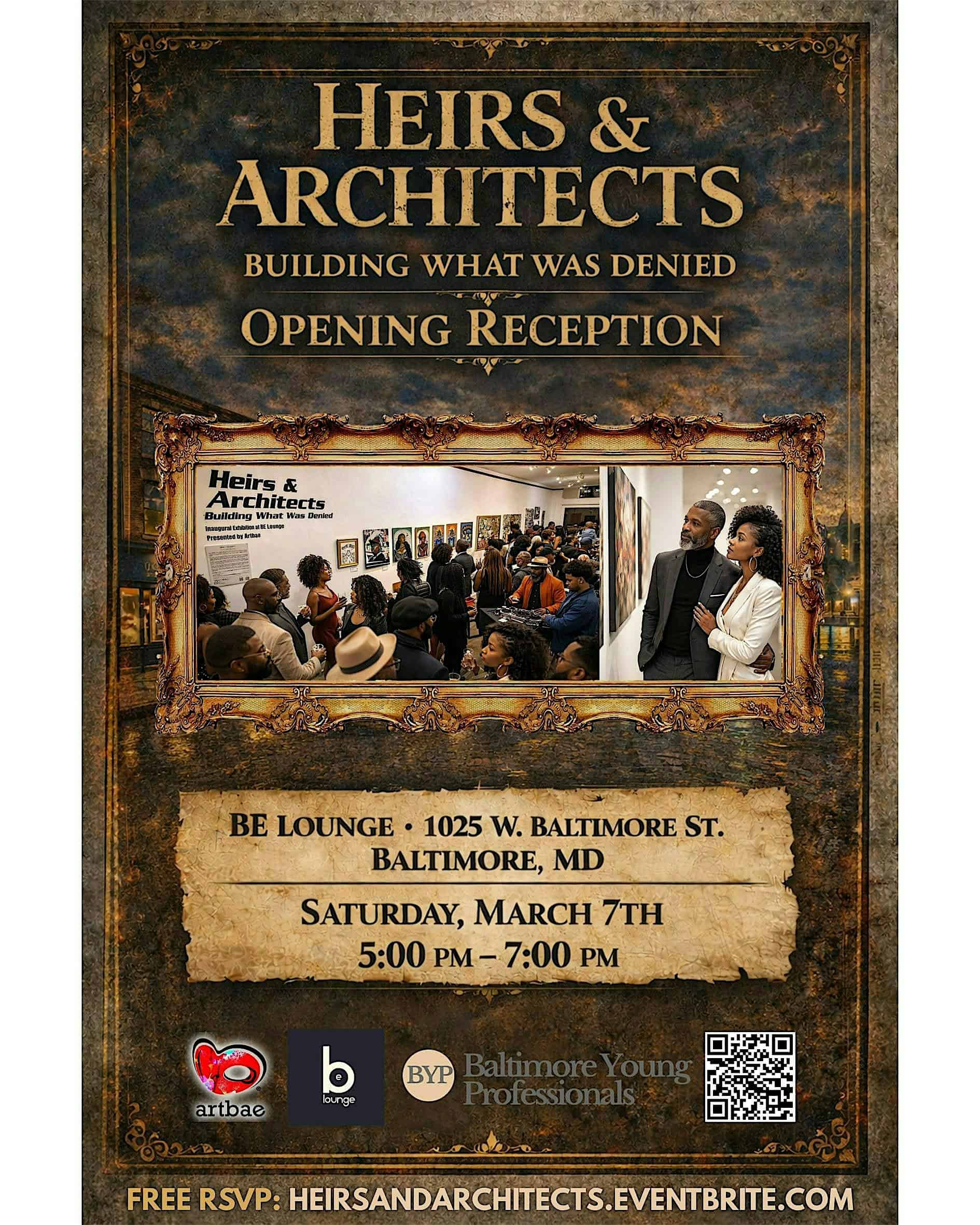 by admin23Feb Art & Vibes: Heirs & Architects Opening Honoring Women & Black Legacy at BE Lounge – Baltimore, MD Art & Vibes: Heirs & Architects Opening Honoring Women & Black Legacy at BE Lounge – Baltimore, MD 1 1 people viewed this event. A Baltimore Black History Month Closeout Exhibit Honoring Legacy, Women in the Arts, and the Future of Cultural Inheritance Tickets-RSVP Link Date And Time Saturday, March 7th, 2026 @ 05:00 PM Location 1025 W. Baltimore Street, Baltimore, MD 21223 Event Types Party or Social GatheringPerforming & Visual Arts Event Category BaltimoreMaryland Share With Friends Facebook Twitter Linkedin Xing Pinterest Share This Post: