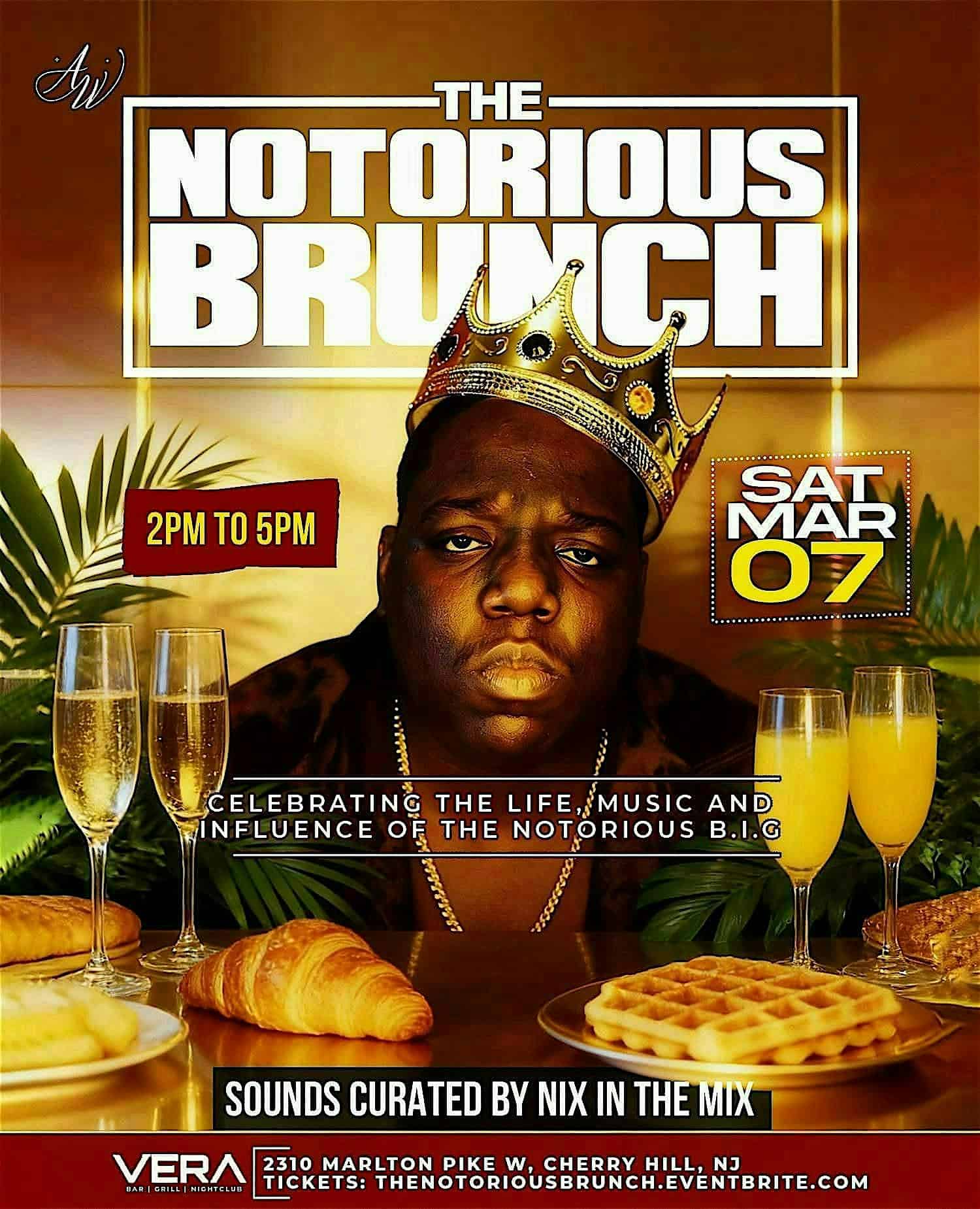 by admin23Feb BEATS & BRUNCH • THE NOTORIOUS B.I.G TRIBUTE at Vera Bar & Grill – Cherry Hill Township, NJ BEATS & BRUNCH • THE NOTORIOUS B.I.G TRIBUTE at Vera Bar & Grill – Cherry Hill Township, NJ 1 1 people viewed this event. Come eat, drink, and sing along to Biggie and the other great 90s hip-hop anthems that defined an era. Tickets-RSVP Link Date And Time Saturday, March 7th, 2026 @ 02:00 PM Location 2310 Marlton Pike, Cherry Hill Township, NJ 8002 Event Types Food & DrinkParty or Social Gathering Event Category New Jersey Share With Friends Facebook Twitter Linkedin Xing Pinterest Share This Post: