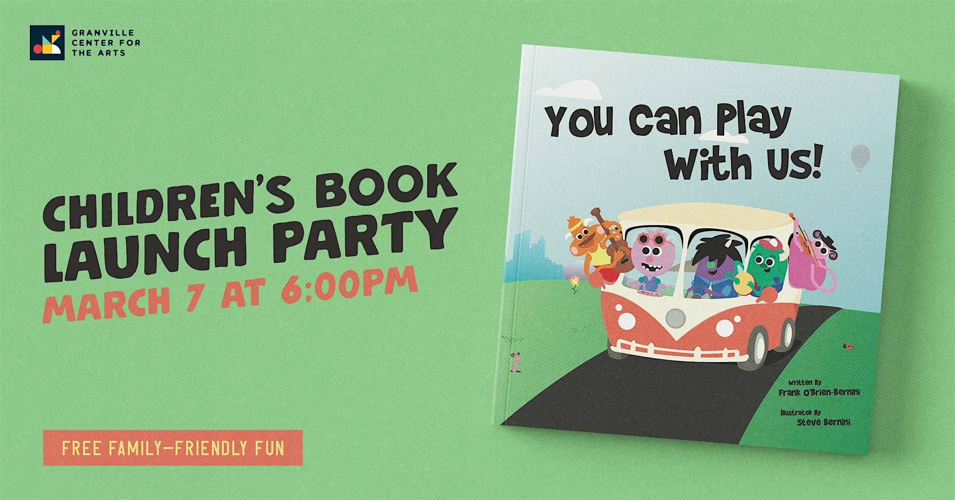 by admin23Feb Book Launch Party: You Can Play With Us! Frank OBrien-Bernini/Steve Bernini at Granville Center for the Arts – Granville, OH Book Launch Party: You Can Play With Us! Frank OBrien-Bernini/Steve Bernini at Granville Center for the Arts – Granville, OH 3 3 people viewed this event. Join us for a book launch party for “You Can Play With Us!” at the Granville Center for the Arts! Tickets-RSVP Link Date And Time Saturday, March 7th, 2026 @ 06:00 PM Location 119 West Broadway, Granville, OH 43023 Event Types Party or Social GatheringPerforming & Visual Arts Event Category Ohio Share With Friends Facebook Twitter Linkedin Xing Pinterest Share This Post: