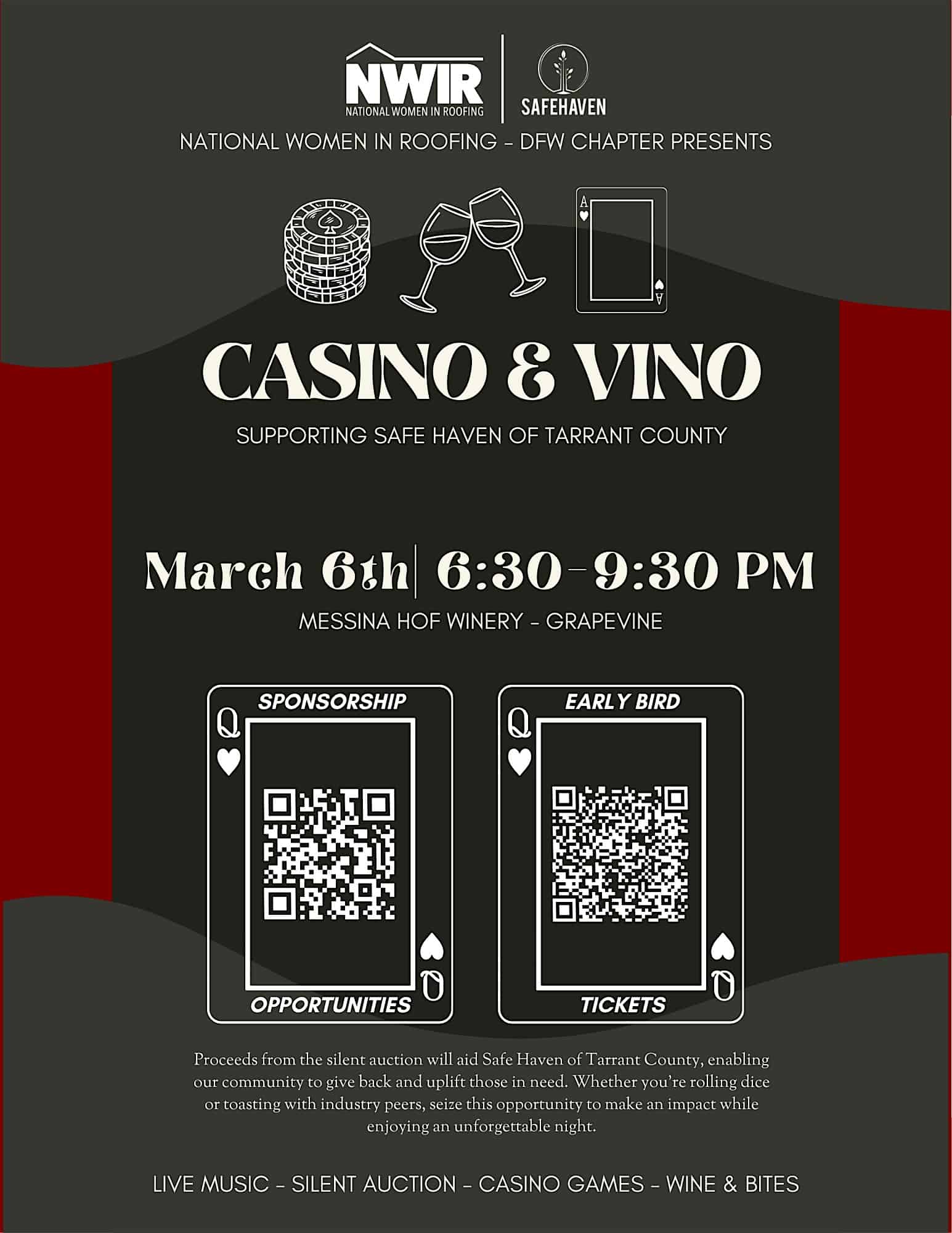 by admin14Feb CASINO & VINO – Supporting Safe Haven of Fort Worth at Messina Hof Grapevine Winery – Grapevine, TX CASINO & VINO – Supporting Safe Haven of Fort Worth at Messina Hof Grapevine Winery – Grapevine, TX 1 1 people viewed this event. Whether you’re rolling dice or toasting with industry peers, seize this opportunity to make an impact while enjoying an unforgettable night. Tickets-RSVP Link Date And Time Saturday, March 7th, 2026 12:00 AM (PST) Venue Messina Hof Grapevine Winery Location 201 South Main Street, Grapevine, TX 76051 Event Types Charity & CausesParty or Social Gathering Event Category DallasTexas Share With Friends Facebook Twitter Linkedin Xing Pinterest Share This Post: