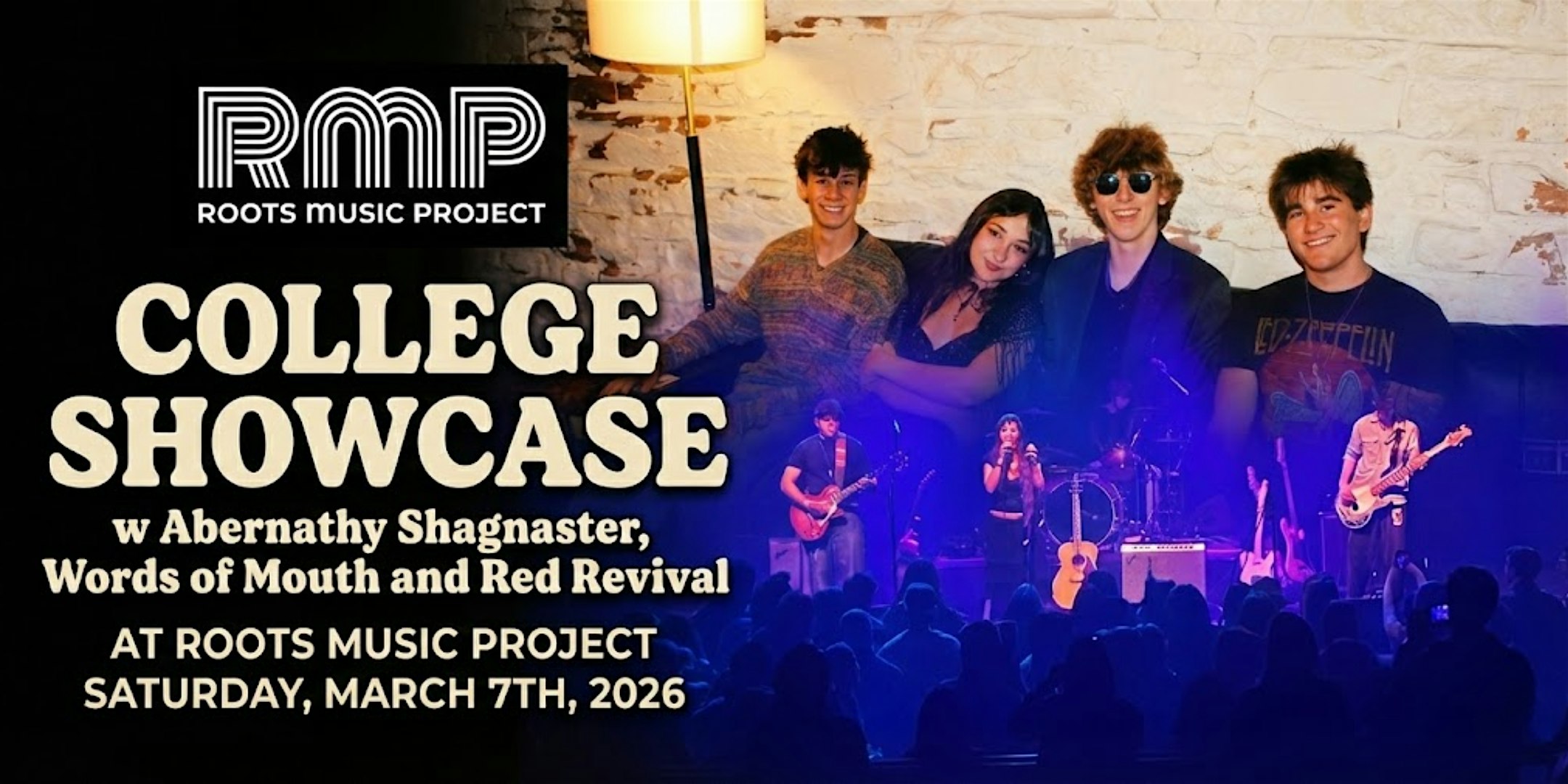 by admin05Mar College Showcase w Abernathy Shagnaster, Words of Mouth and Red Revival at Roots Music Project – Boulder, CO College Showcase w Abernathy Shagnaster, Words of Mouth and Red Revival at Roots Music Project – Boulder, CO 1 1 people viewed this event. College music is booming in Boulder! Three powerhouse bands from the CU scene bring Rock N’ Soul, Roots Rock & country vibes. Let loose! Tickets-RSVP Link Date And Time Saturday, March 7th, 2026 08:00 PM (PST) Venue Roots Music Project Location 4747 Pearl, Boulder, CO 80301 Event Types Concert or PerformancePerforming & Visual Arts Event Category BoulderColorado Share With Friends Facebook Twitter Linkedin Xing Pinterest Share This Post: