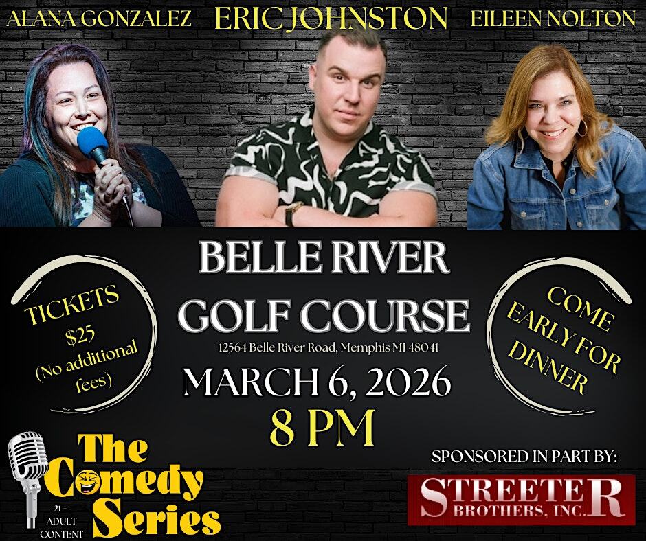 by admin14Feb Comedy Show – Memphis – Belle River Golf Course at Belle River Golf Course – Memphis, MI Comedy Show – Memphis – Belle River Golf Course at Belle River Golf Course – Memphis, MI 1 1 people viewed this event. Join us at Belle River Golf Course in Memphis, Michigan to laugh with Eric Johnston, Eileen Nolton, and Alana Gonzalez! Tickets-RSVP Link Date And Time Saturday, March 7th, 2026 01:00 AM (PST) Venue Belle River Golf Course Location 12564 Belle River Road, Memphis, MI 48041 Event Types Concert or PerformanceFilm, Media & Entertainment Event Category Michigan Share With Friends Facebook Twitter Linkedin Xing Pinterest Share This Post: