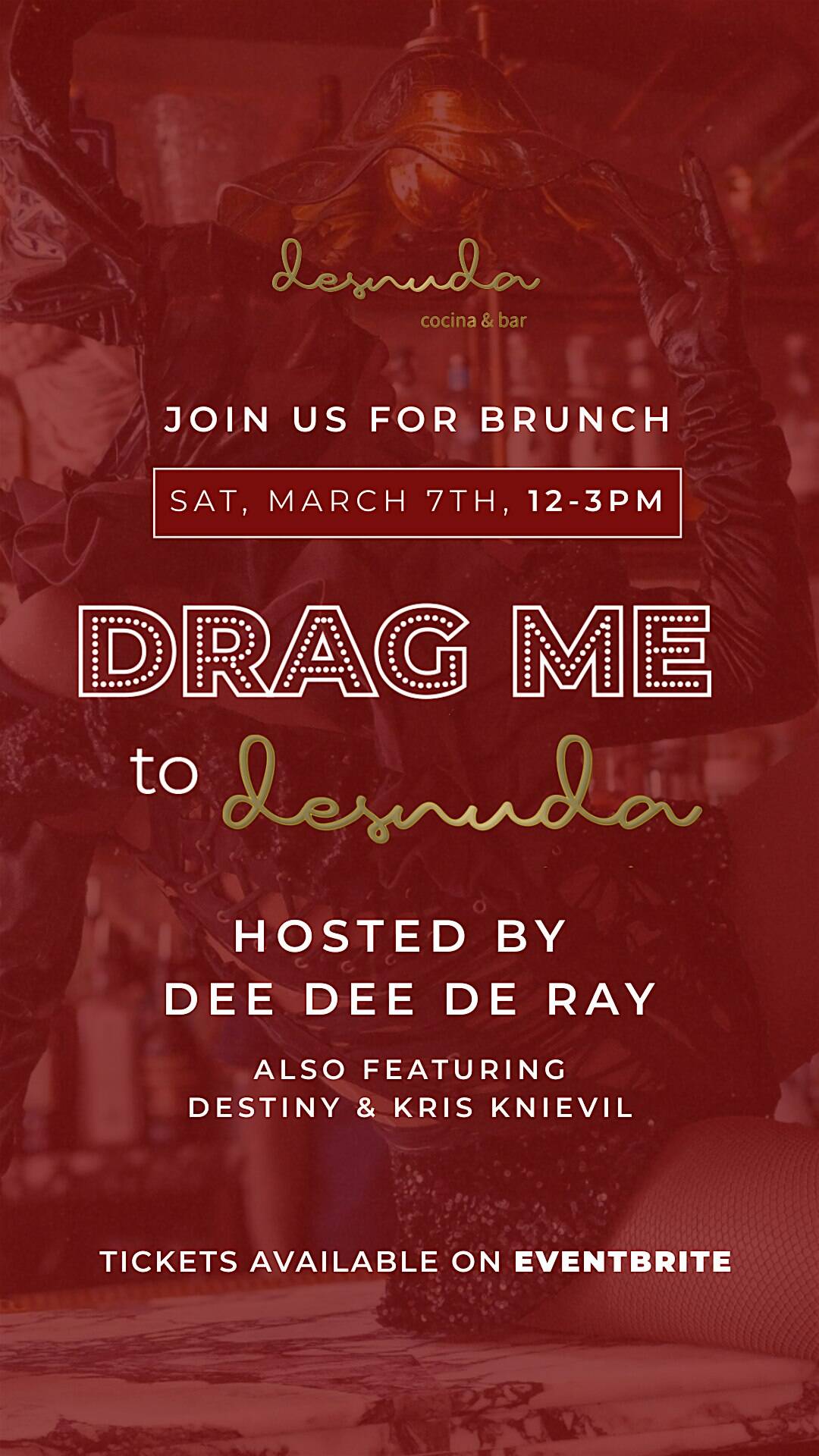 by admin14Feb desnuda drag brunch – march at Desnuda cocina & bar – Boston, MA desnuda drag brunch – march at Desnuda cocina & bar – Boston, MA 3 3 people viewed this event. JOIN US AT DESNUDA FOR DRAG BRUNCH, DAY DRINKING, FUN DANCING! Tickets-RSVP Link Date And Time Saturday, March 7th, 2026 05:00 PM (PST) Venue Desnuda cocina & bar Location 647 Tremont Street, Boston, MA 2118 Event Types Food & DrinkParty or Social Gathering Event Category BostonMassachusetts Share With Friends Facebook Twitter Linkedin Xing Pinterest Share This Post: