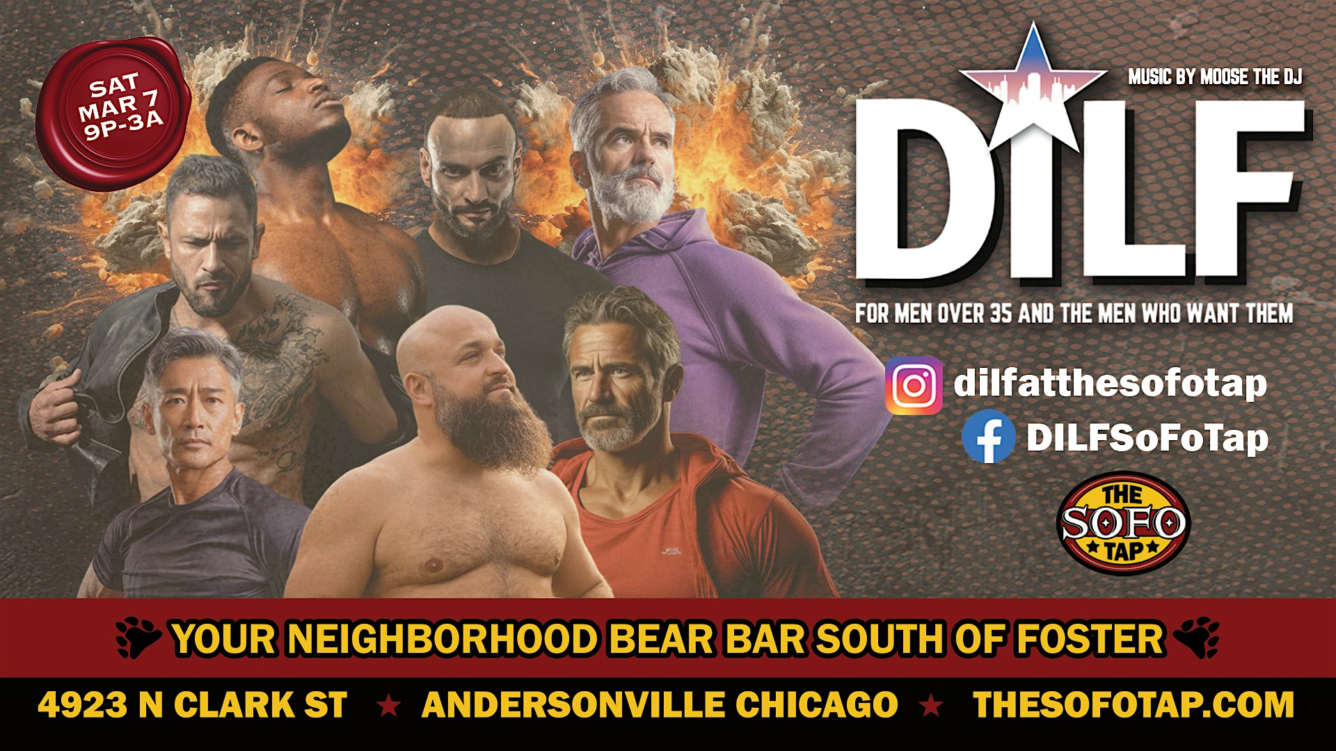 by admin27Feb DILF at The SoFo Tap – Chicago, IL DILF at The SoFo Tap – Chicago, IL 1 1 people viewed this event. DILF is back on Saturday, March 7th! Geared towards men over 35 and those who love them, Moose the DJ will be spinning beats all night long! Tickets-RSVP Link Date And Time Saturday, March 7th, 2026 09:00 PM (PST) Venue The SoFo Tap Location 4923 North Clark Street, Chicago, IL 60640 Event Types Community & CultureParty or Social Gathering Event Category ChicagoIllinois Share With Friends Facebook Twitter Linkedin Xing Pinterest Share This Post: