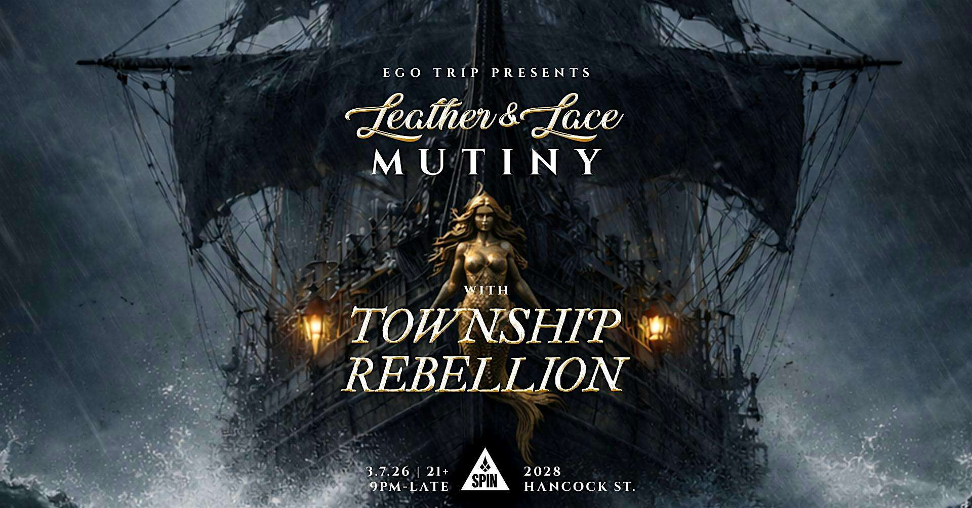 by admin23Feb Ego Trip Presents: Leather & Lace XII: Mutiny ☠️ feat. Township Rebellion at Spin Nightclub – San Diego, CA Ego Trip Presents: Leather & Lace XII: Mutiny ☠️ feat. Township Rebellion at Spin Nightclub – San Diego, CA 1 1 people viewed this event. Immersive dance party with three floors of art installations, two rooms of music, and a theme of leather, lace, and lusty pirate mutiny Tickets-RSVP Link Date And Time Saturday, March 7th, 2026 09:00 PM (PST) Venue Spin Nightclub Location 2028 Hancock Street, San Diego, CA 92110 Event Types MusicParty or Social Gathering Event Category CaliforniaSan Diego Share With Friends Facebook Twitter Linkedin Xing Pinterest Share This Post: