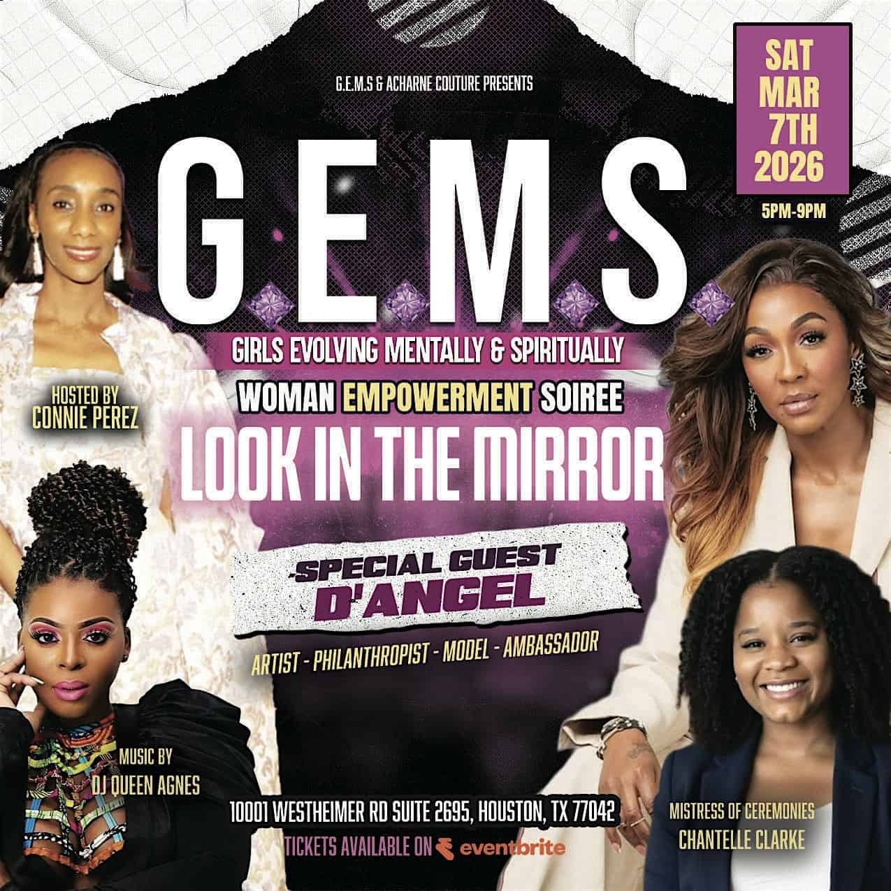 by admin23Feb G.E.M.S -GIRLS EVOLVING MENTALLY & SPIRITUALLY WOMEN EMPOWERMENT SOIREE at 10001 Westheimer Rd suite 2695 – Houston, TX G.E.M.S -GIRLS EVOLVING MENTALLY & SPIRITUALLY WOMEN EMPOWERMENT SOIREE at 10001 Westheimer Rd suite 2695 – Houston, TX 1 1 people viewed this event. G.E.M.S WOMEN EMPOWERMENT SOIREE 2026 Tickets-RSVP Link Date And Time Saturday, March 7th, 2026 @ 05:00 PM Location 10001 Westheimer Road, Houston, TX 77042 Event Types Charity & CausesParty or Social Gathering Event Category HoustonTexas Share With Friends Facebook Twitter Linkedin Xing Pinterest Share This Post: