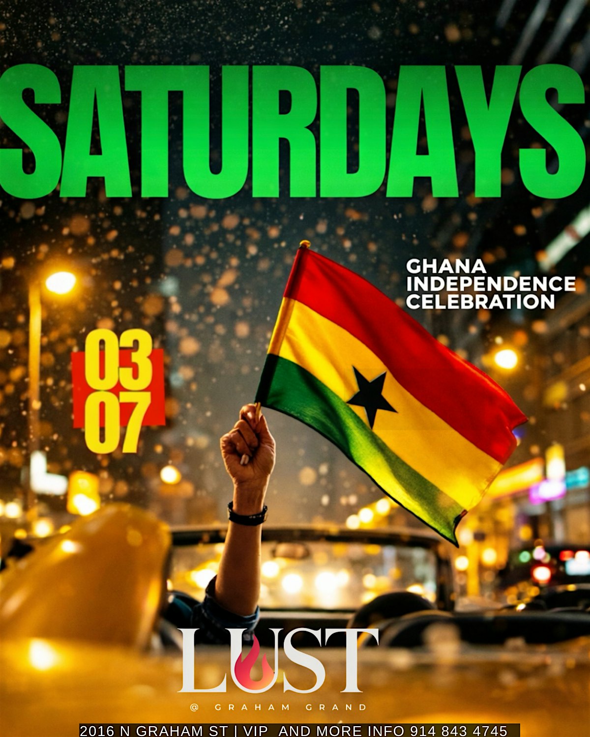 by admin27Feb GHANA INDEPENDENCE CELEBRATION! $5 DRINKS! at Lust ultra lounge – Charlotte, NC GHANA INDEPENDENCE CELEBRATION! $5 DRINKS! at Lust ultra lounge – Charlotte, NC 1 1 people viewed this event. Charlotte, we’re turning ALL THE WAY UP for Ghana Independence Weekend! Experience a high-energy Afrobeat + International vibe as we cele Tickets-RSVP Link Date And Time Saturday, March 7th, 2026 10:00 PM (PST) Venue Lust ultra lounge Location 2016 North Graham Street, Charlotte, NC 28206 Event Types Community & CultureParty or Social Gathering Event Category CharlotteNorth Carolina Share With Friends Facebook Twitter Linkedin Xing Pinterest Share This Post: