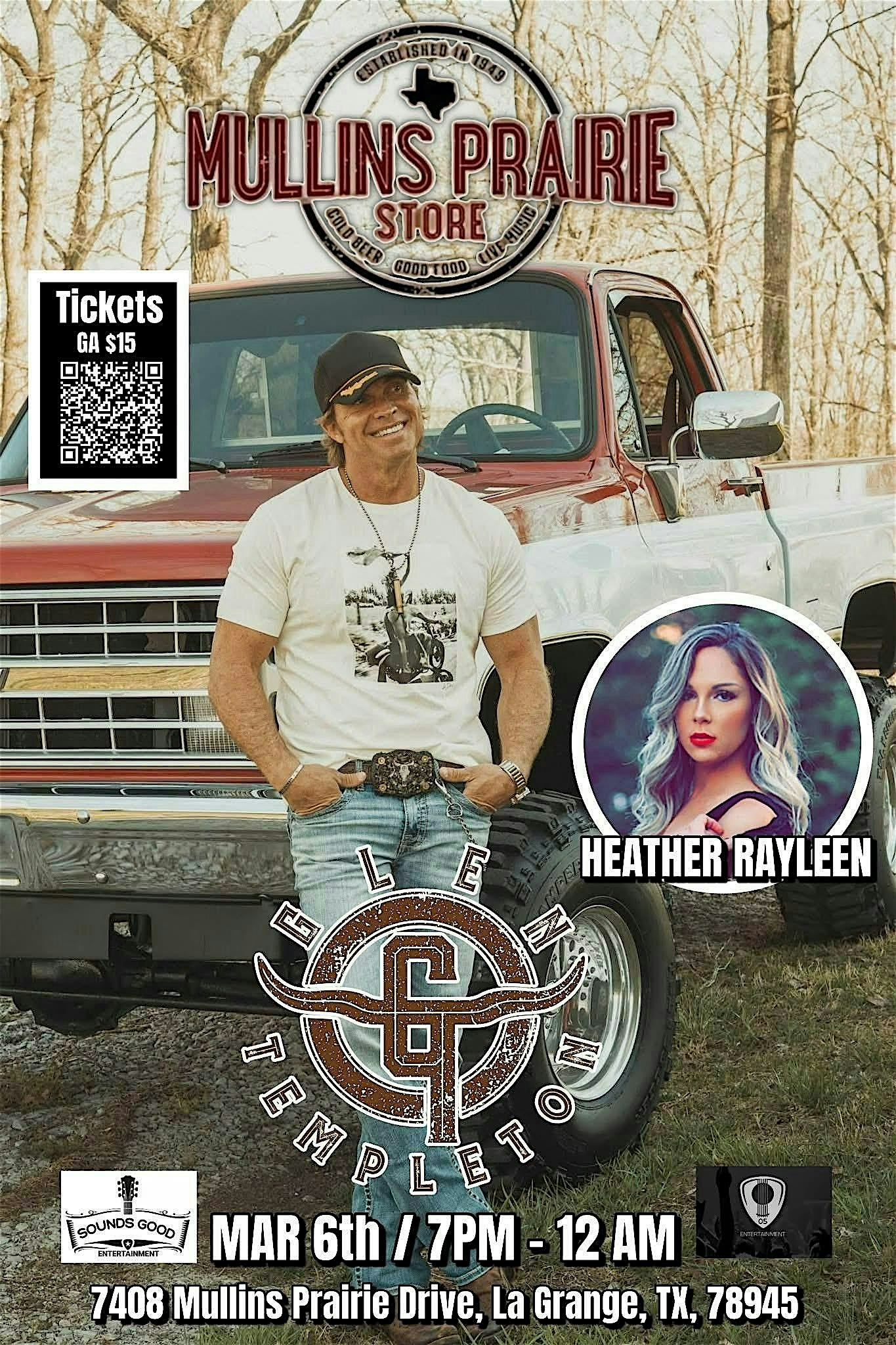 by admin13Feb Glen Templeton at Mullins Prairie Store at Mullins Prairie Store – La Grange, TX Glen Templeton at Mullins Prairie Store at Mullins Prairie Store – La Grange, TX 1 1 people viewed this event. Glen Templeton making his debut at Mullins Prairie Store with special guest Heather Rayleen. Tickets-RSVP Link Date And Time Saturday, March 7th, 2026 01:00 AM (PST) Venue Mullins Prairie Store Location 7408 Mullins Prairie Loop, La Grange, TX 78945 Event Types Concert or PerformanceMusic Event Category Texas Share With Friends Facebook Twitter Linkedin Xing Pinterest Share This Post: