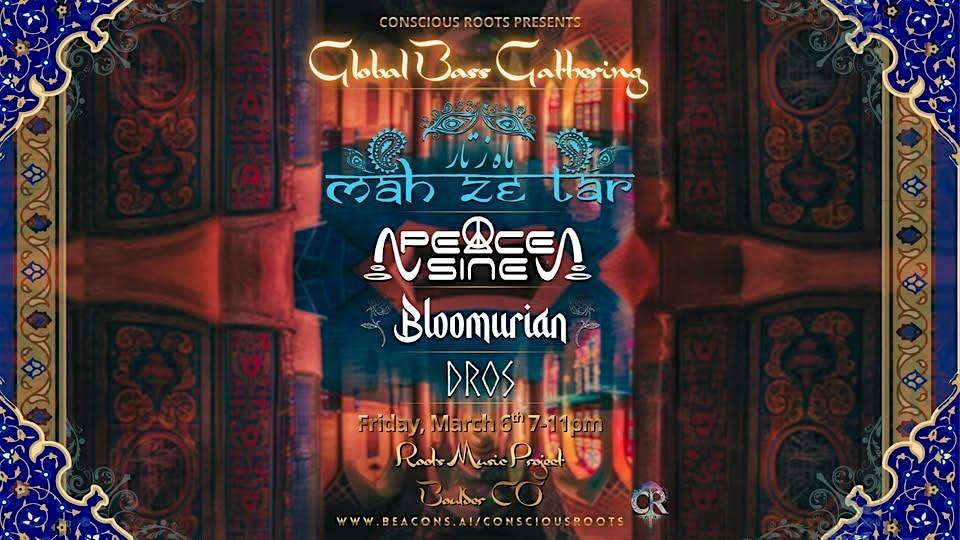 by admin13Feb Global Bass Gathering w/ Mah Ze Tar, Peace Sine, Bloomurian and DROS at Roots Music Project – Boulder, CO Global Bass Gathering w/ Mah Ze Tar, Peace Sine, Bloomurian and DROS at Roots Music Project – Boulder, CO 1 1 people viewed this event. ✨ Step into a World Bass Ritual where ancient tones meet future frequencies. Tickets-RSVP Link Date And Time Saturday, March 7th, 2026 02:00 AM (PST) Venue Roots Music Project Location 4747 Pearl, Boulder, CO 80301 Event Types Concert or PerformanceMusic Event Category BoulderColorado Share With Friends Facebook Twitter Linkedin Xing Pinterest Share This Post: